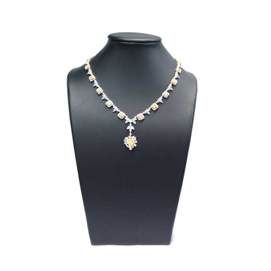 This gorgeous necklace is finely made of fancy yellow diamonds on the 18K white gold setting. The necklace showcases a delicate design and detailed craftsmanship. It is a wonderful addition to any lady's jewelry collection.