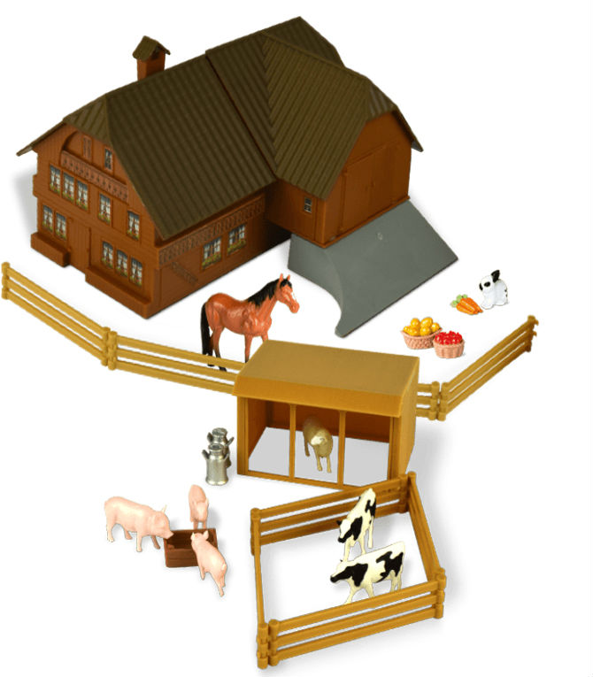 The FARMMANIA collection consists of 35 collectible farm animal figurines and miniature accessories, a farm house and additional constructions that can be gathered in a mini farm, so children can enjoy playing and develop their creativity.