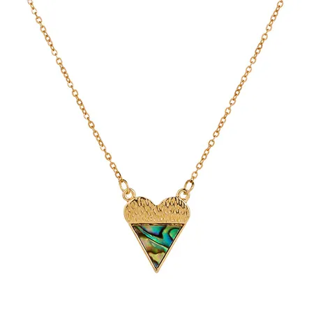 • As shown is a high-fashion shell materials heart pendant with golden plated parts.