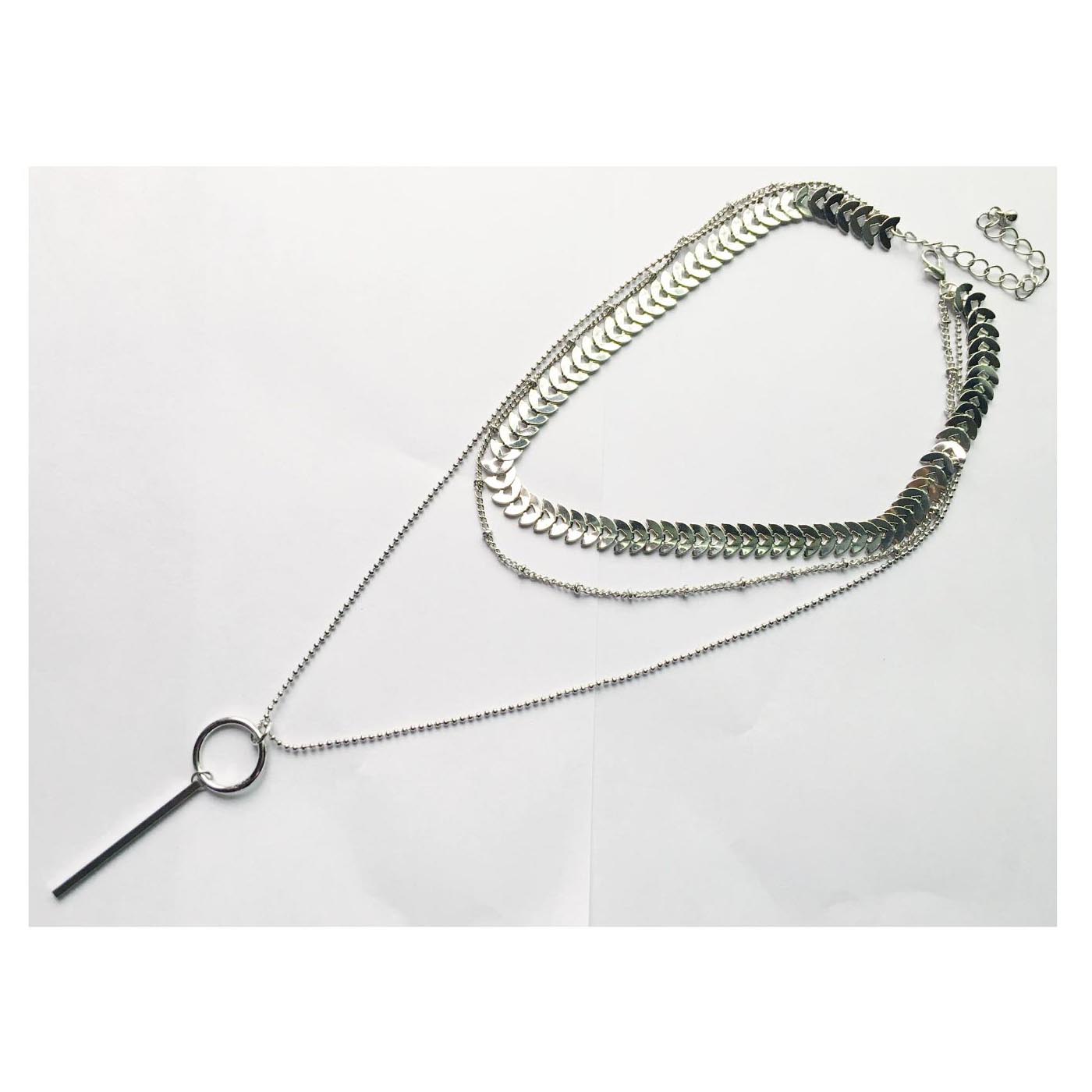 • As shown is an elegant trendy necklace with multiple strands each highlighted by alloy parts accessories.