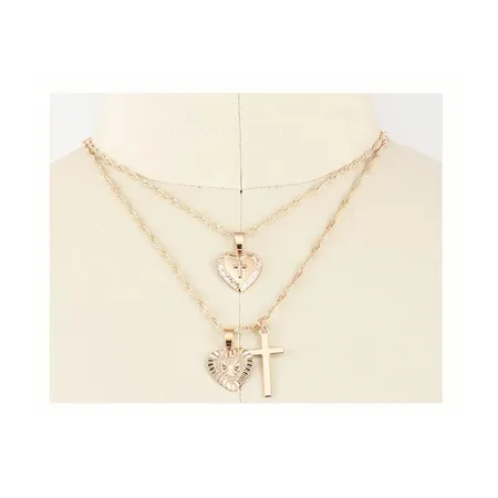 • As shown is an elegant trendy alloy pendant necklace with multiple strands each highlighted by metallic accessories.