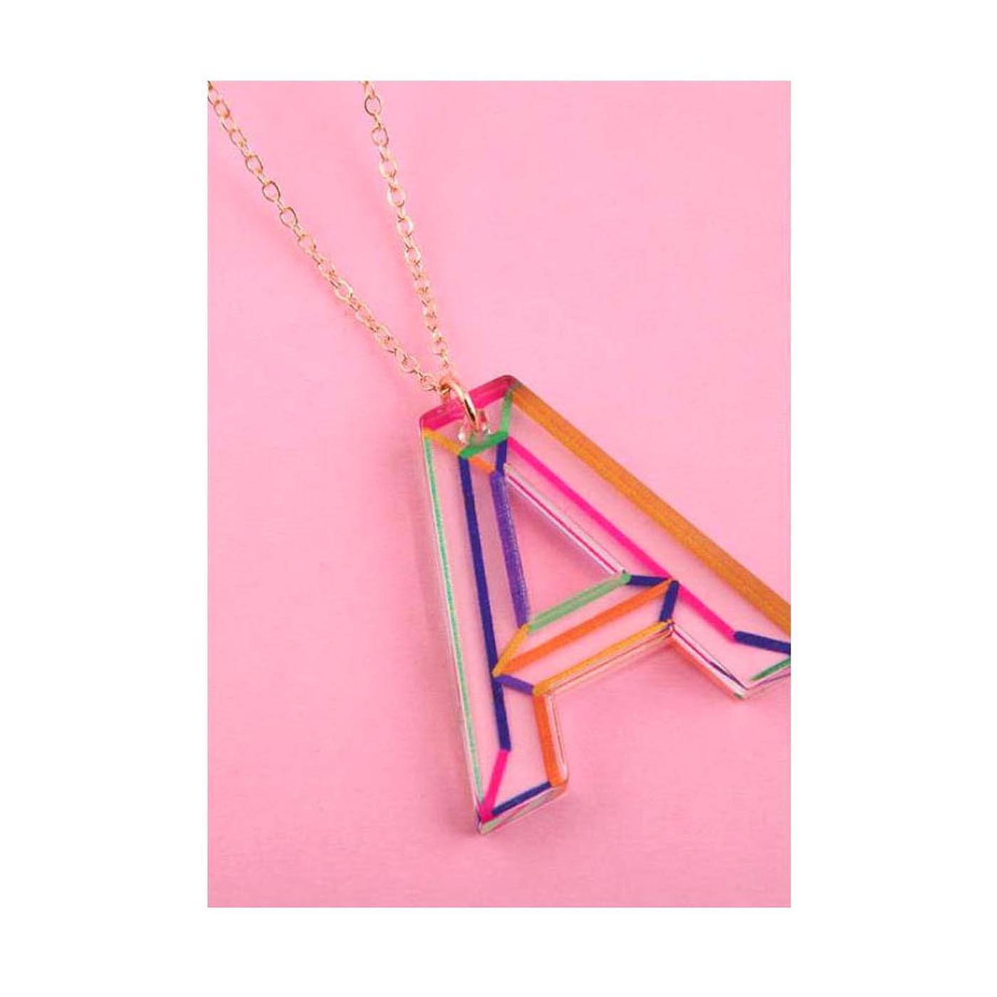 • As shown is a high-fashion acrylic materials alphabet pendant with golden plated chain.