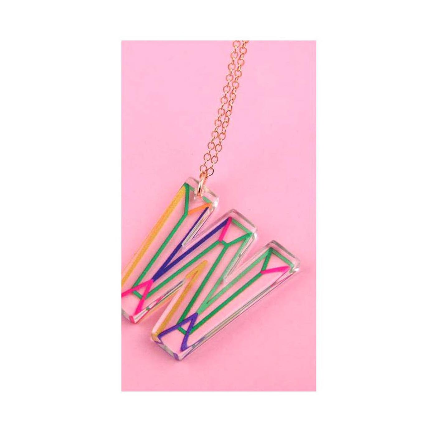 • As shown is a high-fashion acrylic materials alphabet pendant with golden plated chain.