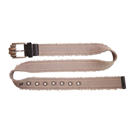 This fashion belt is made of canvas for durability and stylishness. The edges are deliberately distressed for a touch of wildness. The special metallic buckle helps to complete the whole fashionable look.