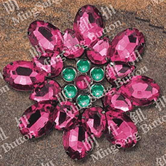 This gorgeous brooch features eye-catching gemstone-like adornments in pink and green colors. It comes in a floral shape with a silvery construction. Add a touch of elegance to any outfit with this beautiful brooch.