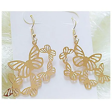 • As shown is a high-fashion golden plated butterfly style charm drop earring.