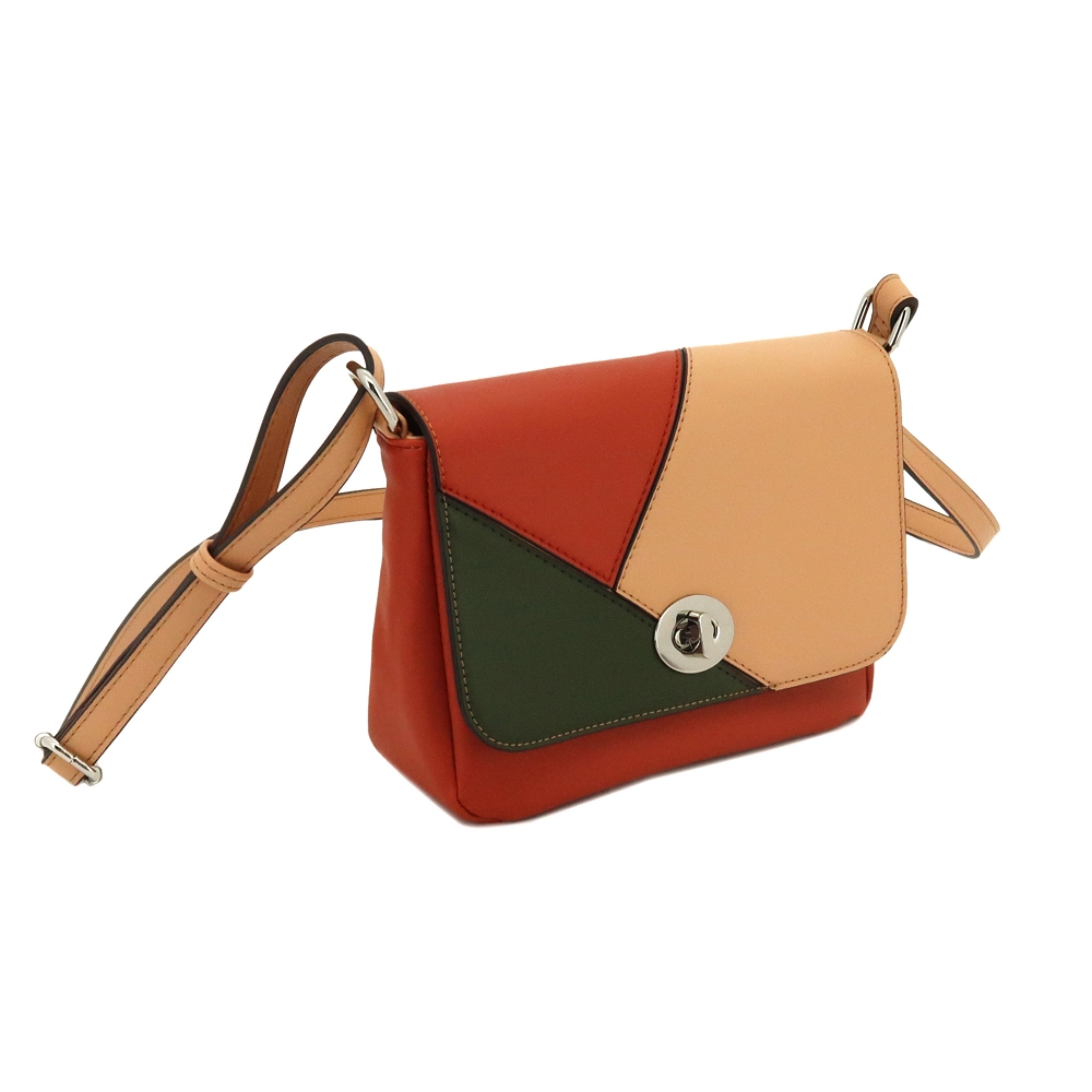 • Color Blocking Flap Shoulder bag with adjustable Shoulder strap , you can wear it in different ways. Twist lock-fastening  on front flap.