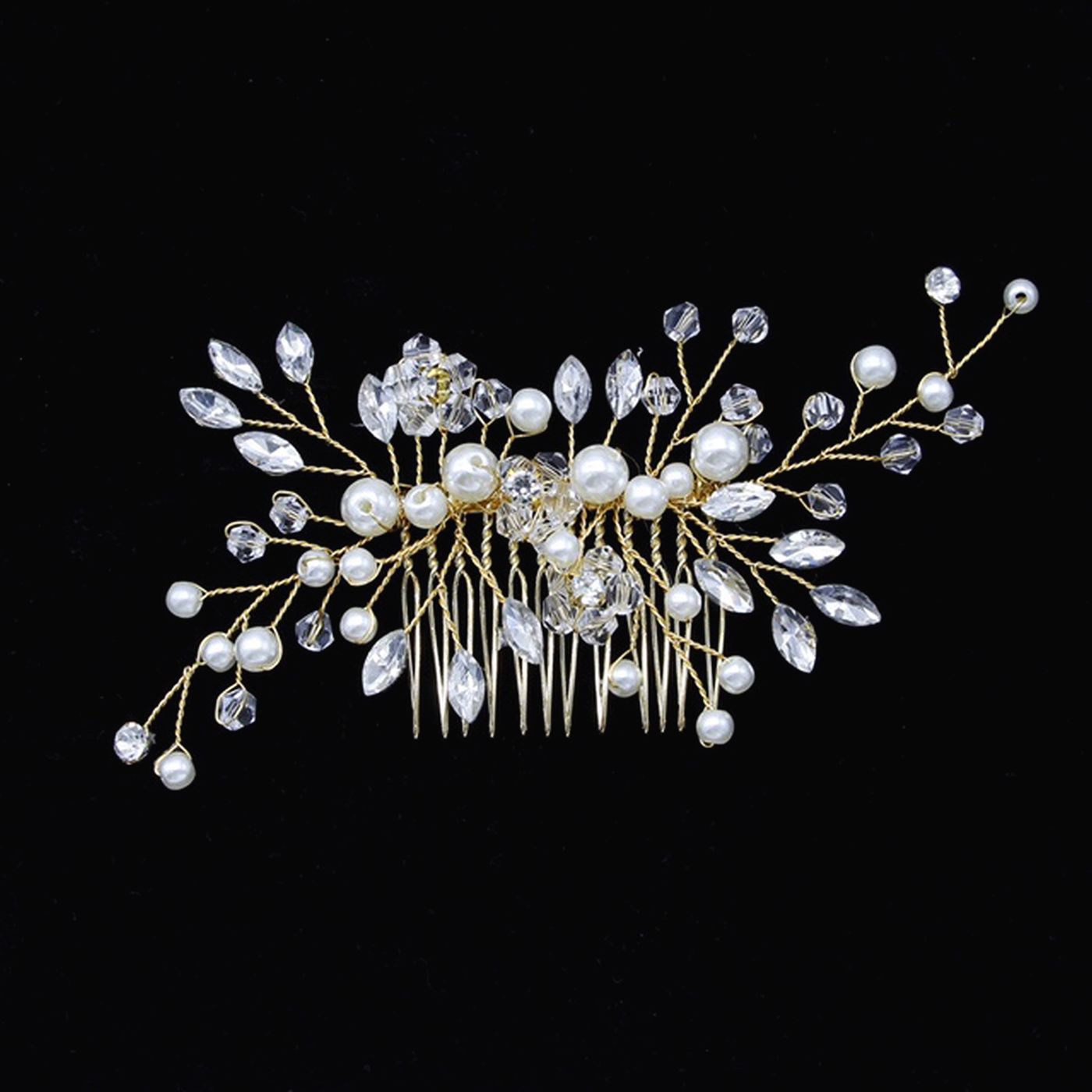 As shown is a high-fashion crystal imitation pearl style silver plated alloy parts lady hair comb.