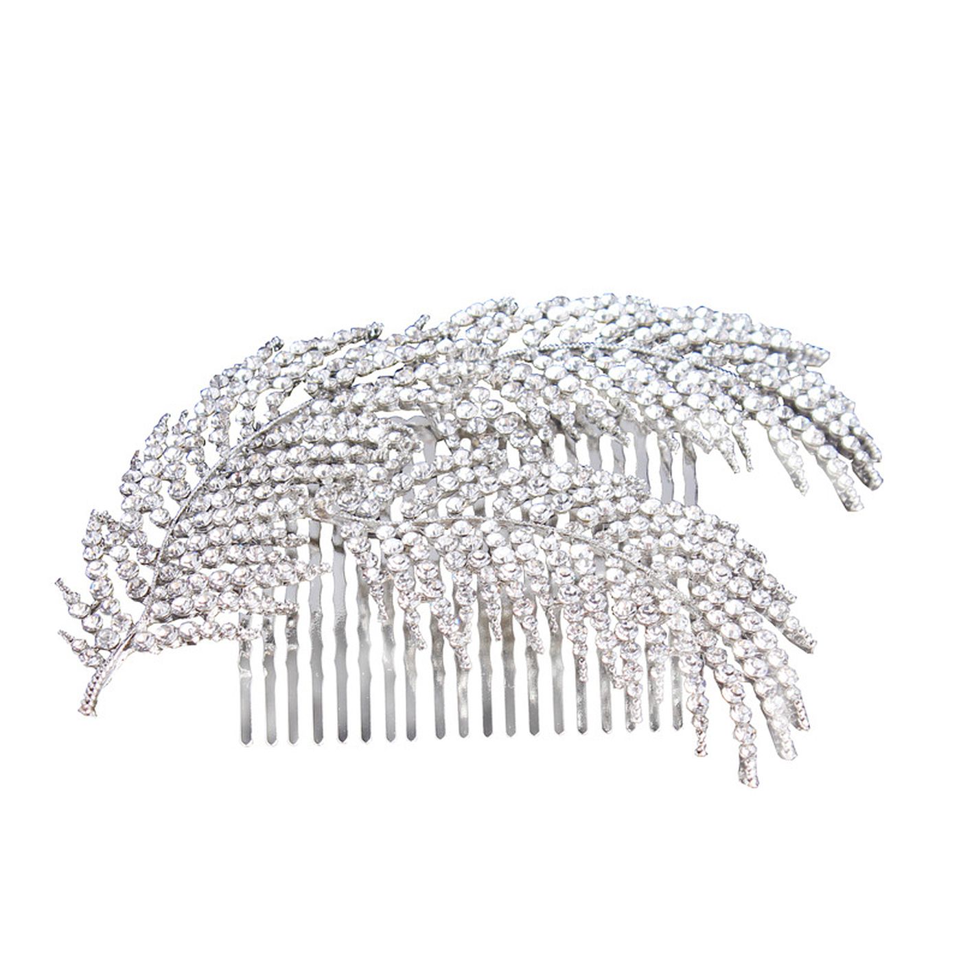 As shown is a high-fashion crystal style silver plated alloy parts lady hair comb.