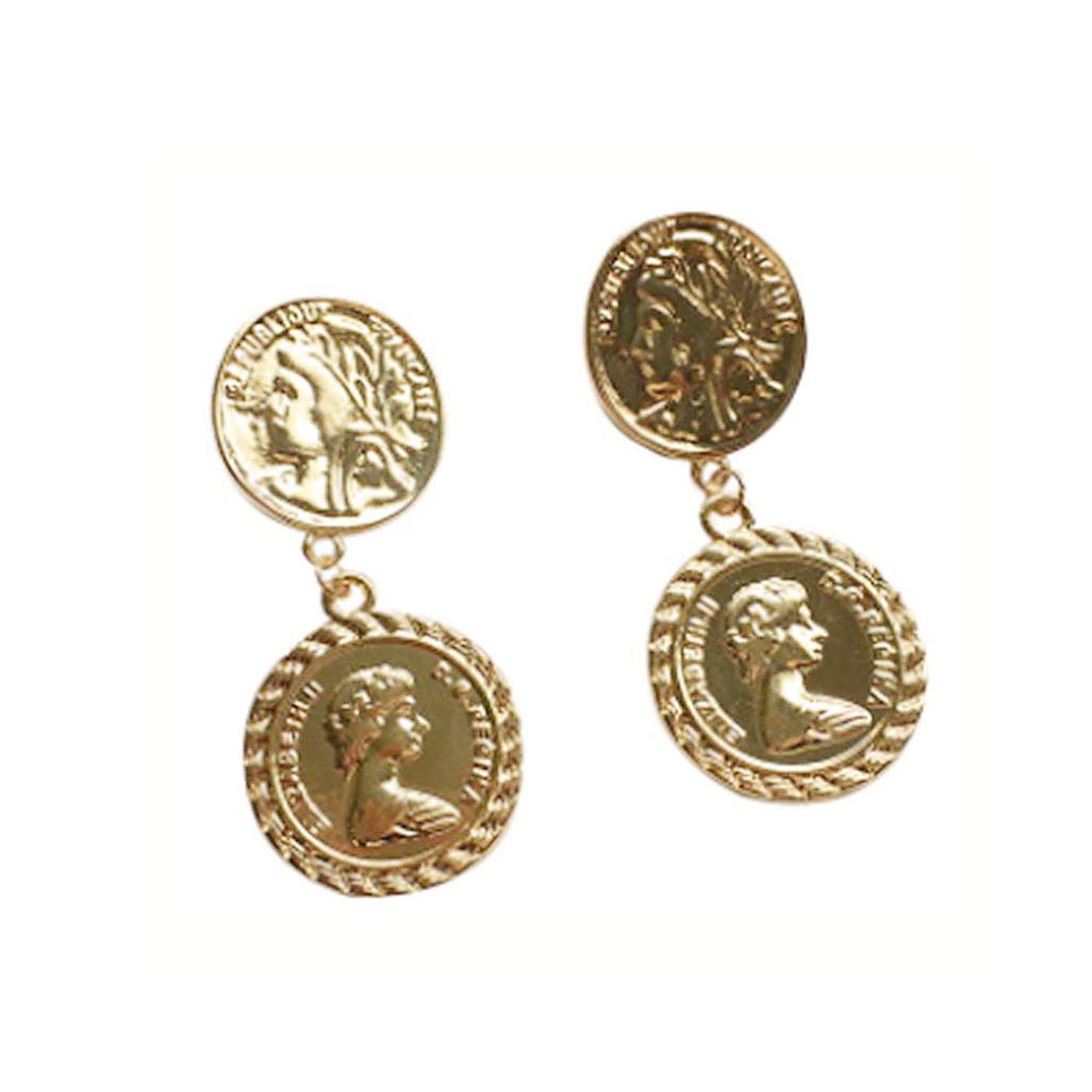 • As shown is a high-fashion golden plated coins charm drop earring.