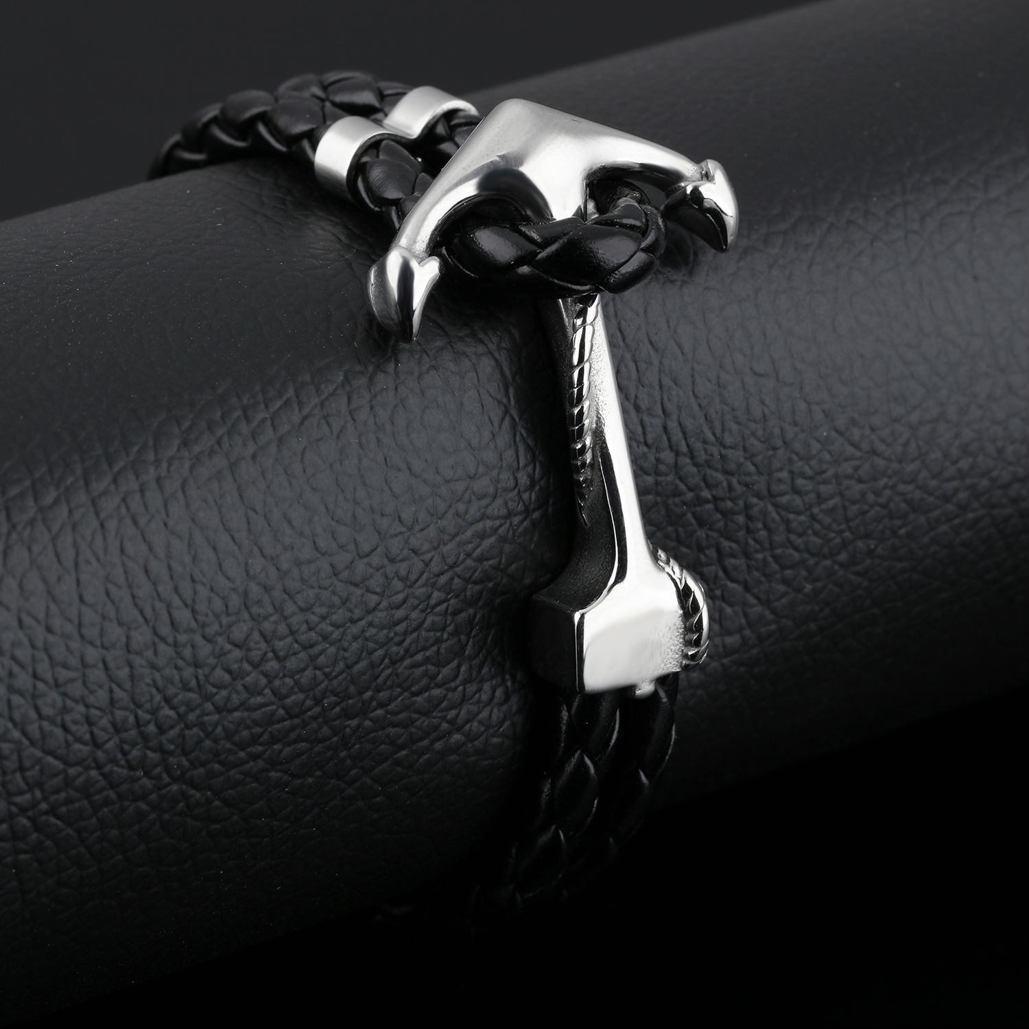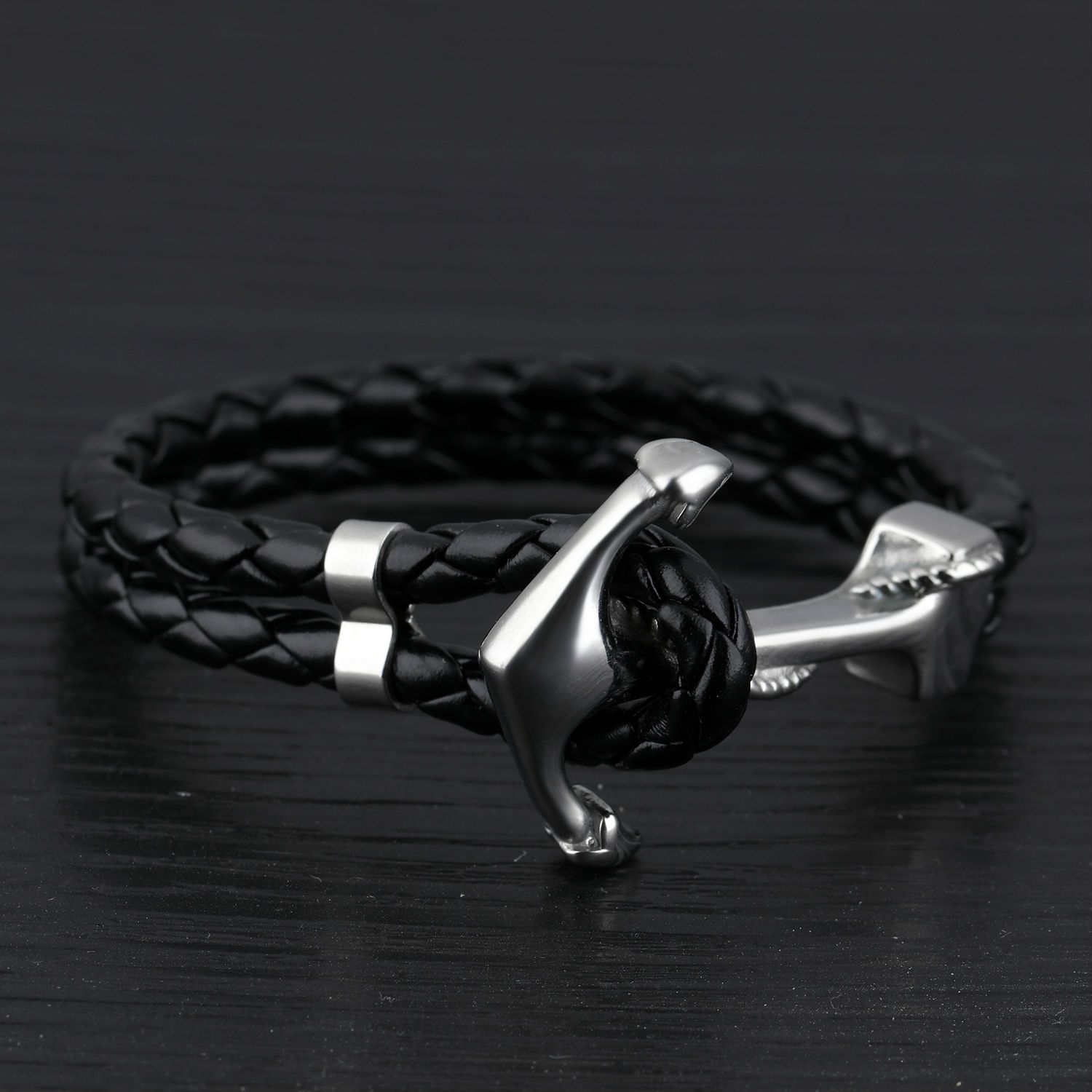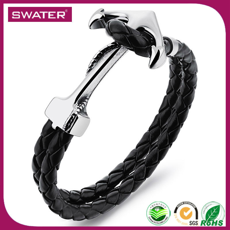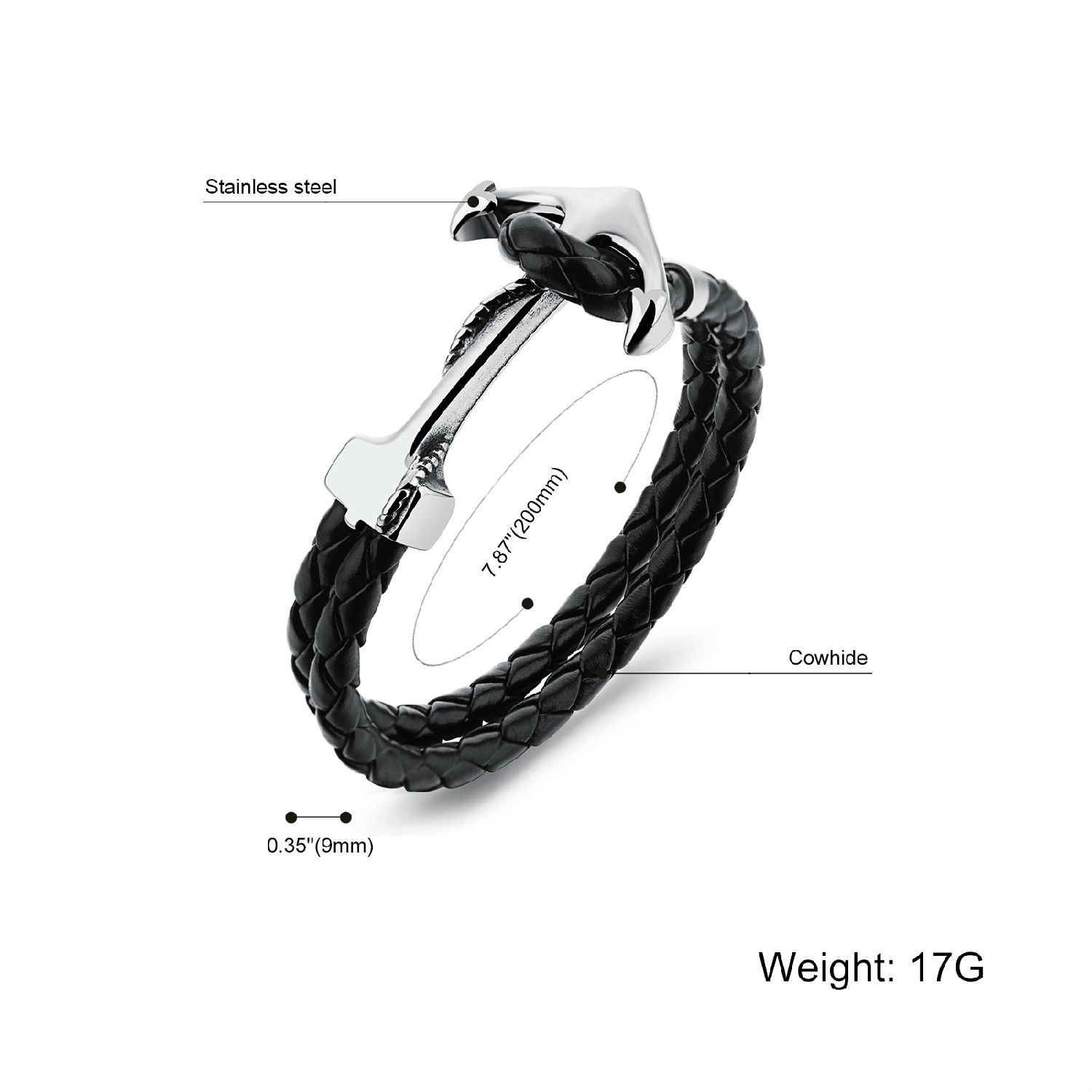 Fashion Handmade Braided Men's Leather Engraved Anchors Bracelet