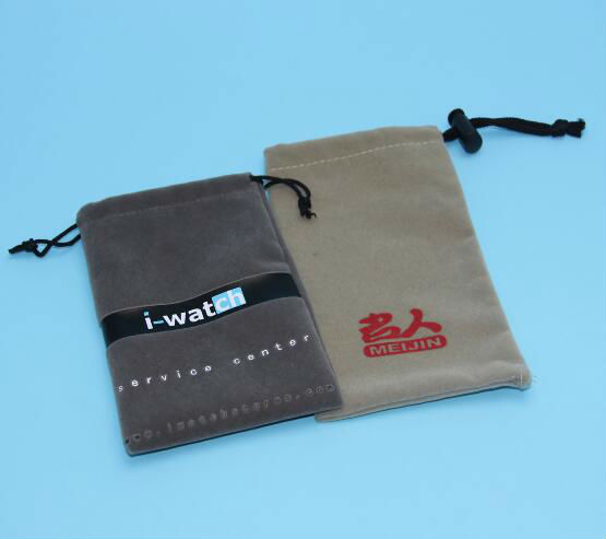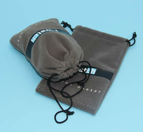1.Material: 1C velvet material + silk printing logo + drawstring