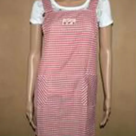 Demonstrated is a classy bib apron in bright colored appearance.
