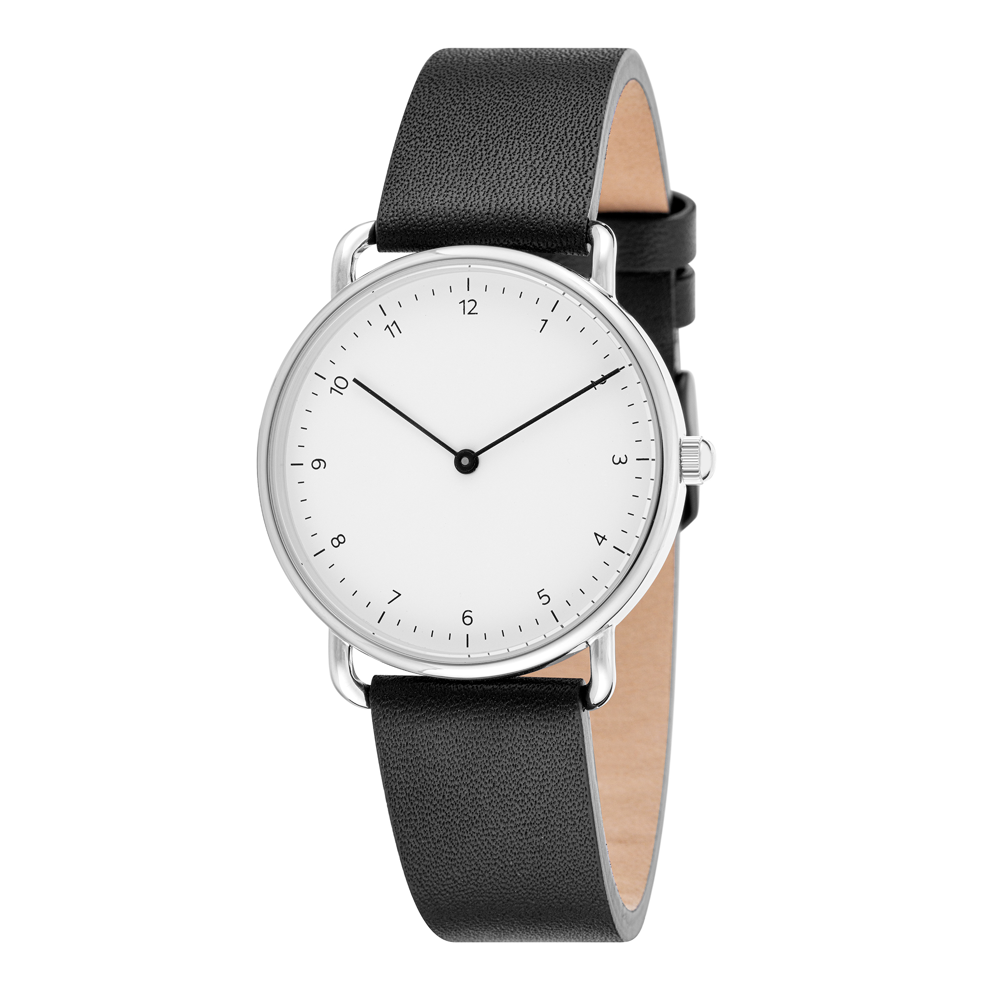 Stainless Steel Case • 2 Hands Japan Movement • Dial with printed index • Genuine leather strap • 5 ATM • Case Size: 36mm • leather strap for interchangeable •silver version •