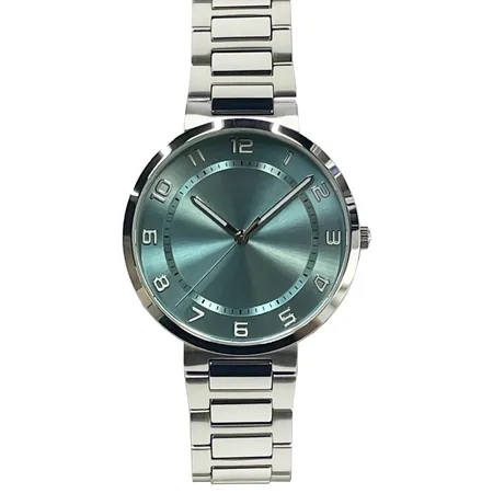 This exquisite watch features a sleek silver stainless steel design, providing a sophisticated backdrop for its ice blue dial. The dial creating a perfect balance between femininity and contemporary fashion.