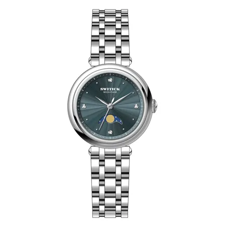 Elevate luxury collections with our 316 stainless steel moonphase watches. The case showcases exquisite sunburst dials (White/Gold/Blue options) with Roman numeral indices, while the exhibition caseback reveals precision Japan quartz movement.