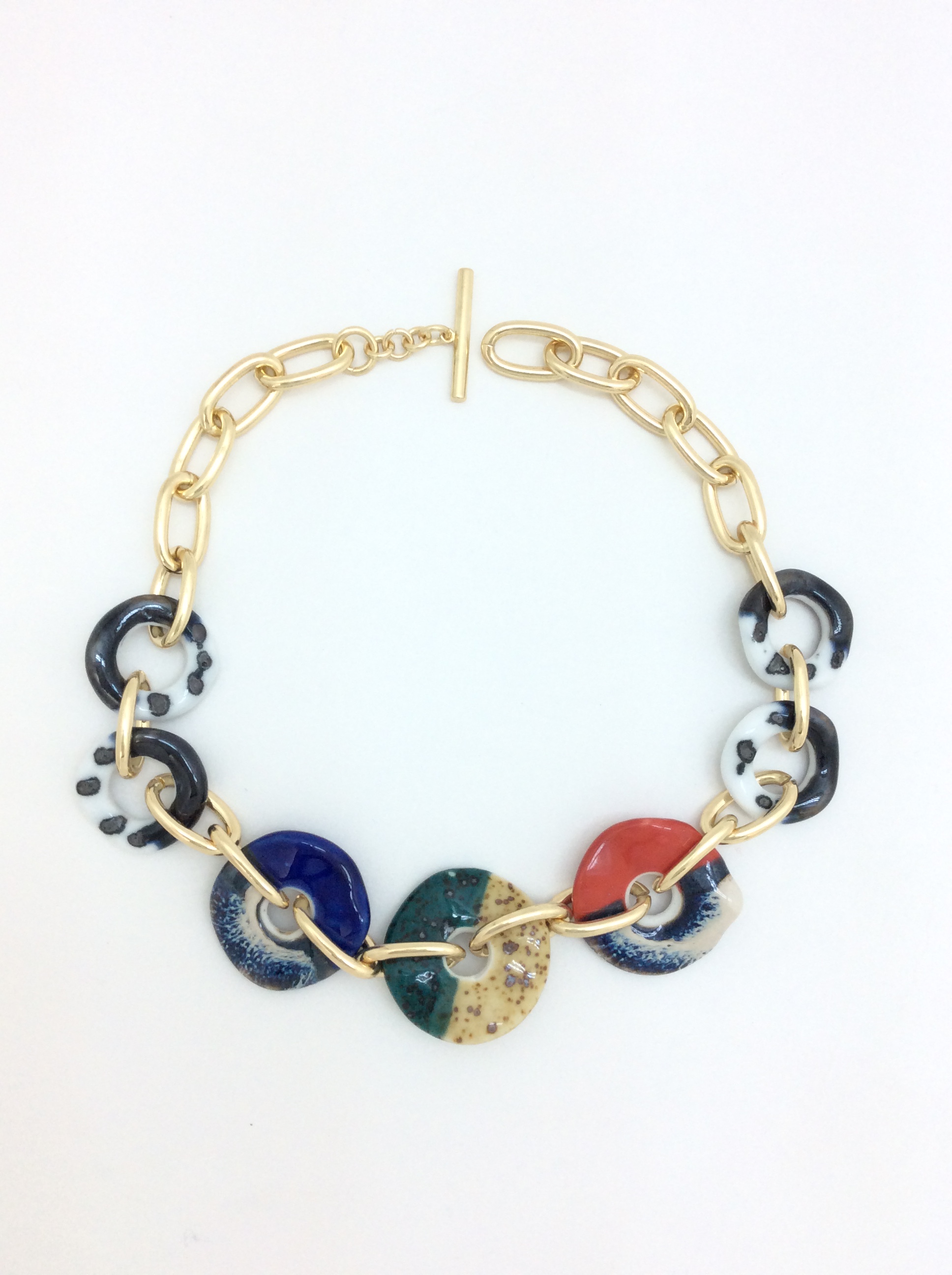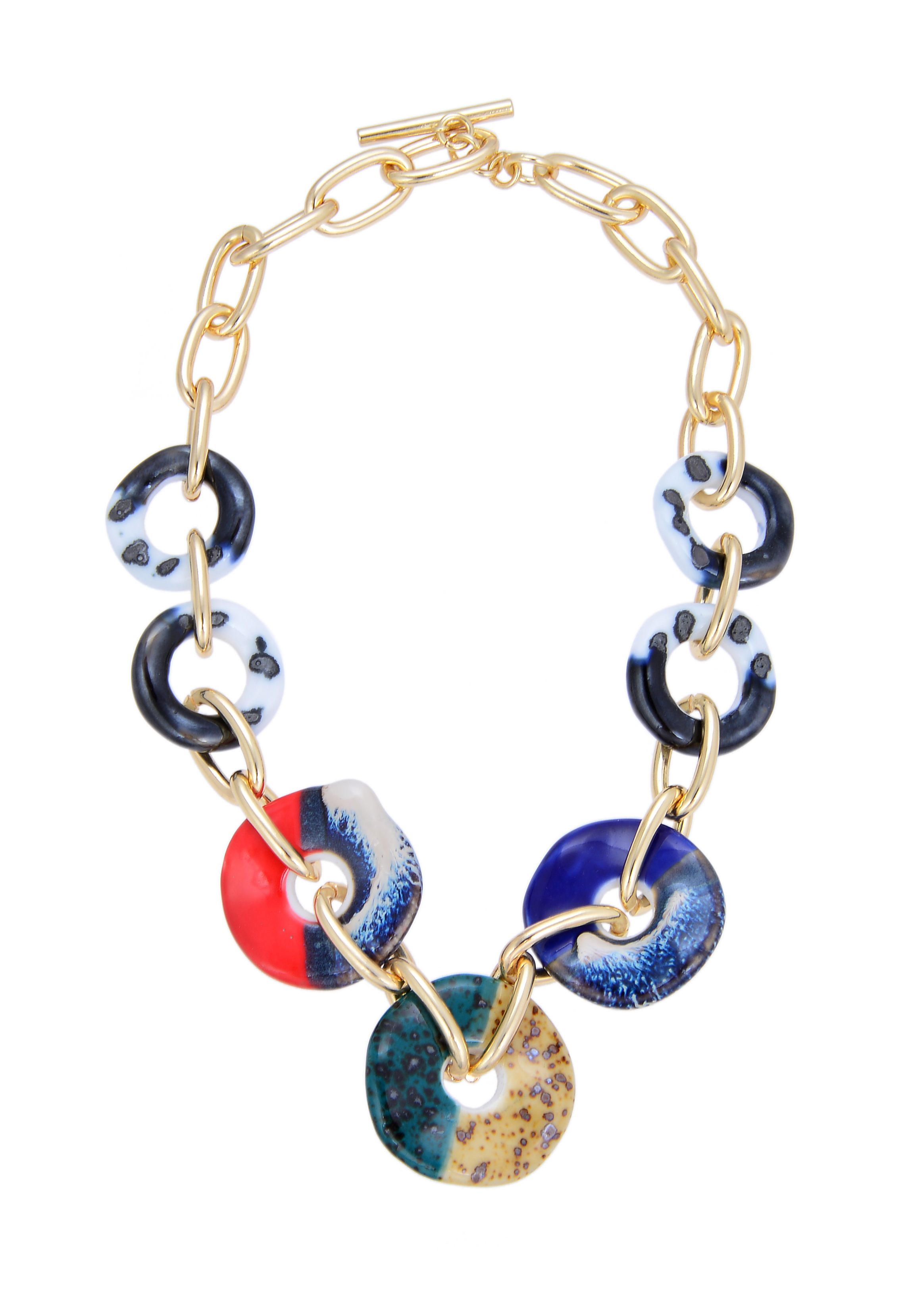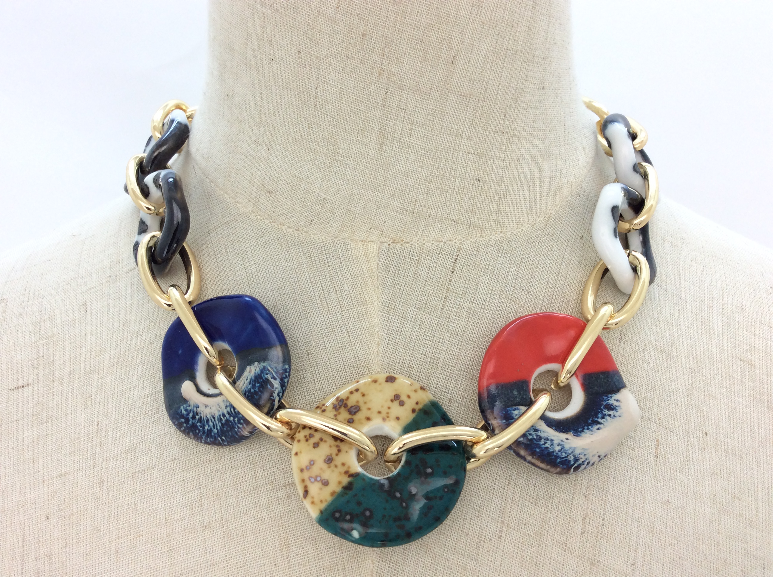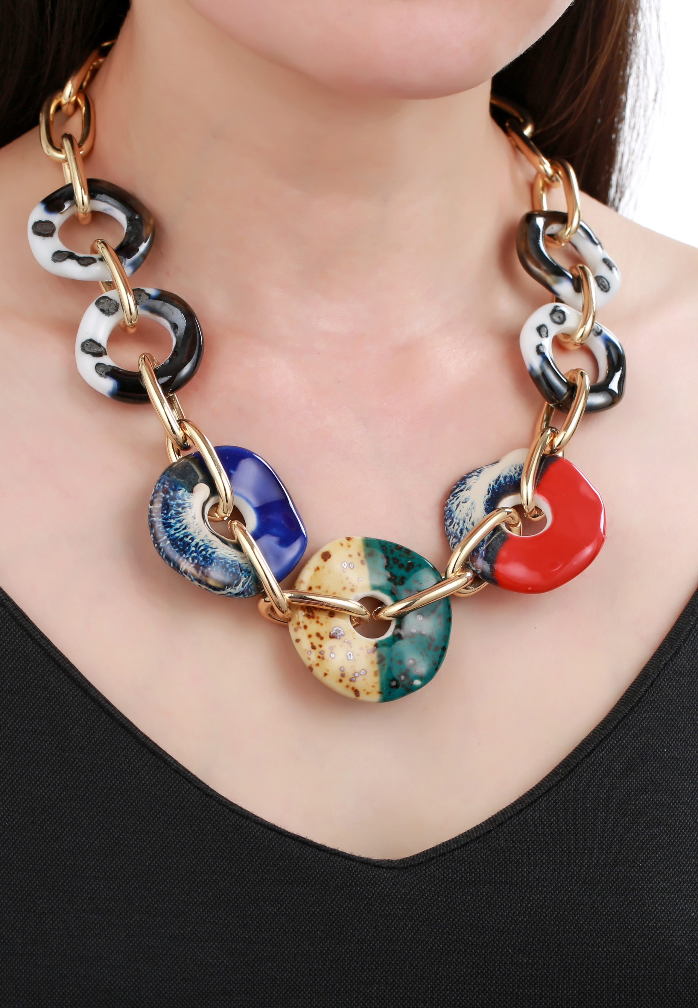 Fashion Lady Advanced Fashion Jewelry Double Layerpendant Necklace Mixed Color Ceramic Beads Necklace