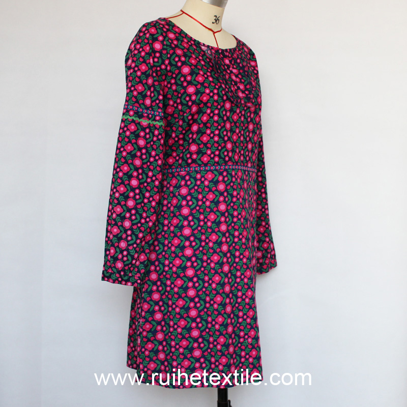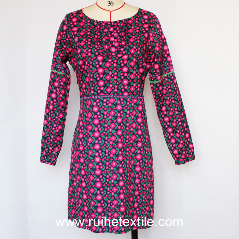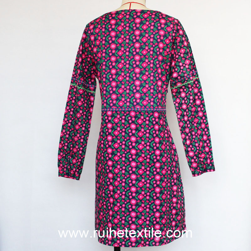 Fashion Long Sleeve Printed Shift Dress for Ladies