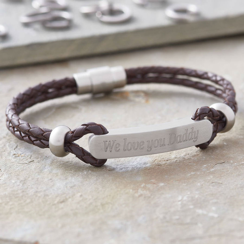 LOYALTY B249 Custom Engraved Blank Bar Bracelet Fashion Men Double Leather Bracelet