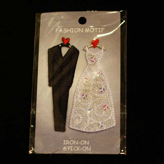 The featured motifs can be used to decorate your garments. They can be stuck or ironed onto jackets, blouses and handbags. The motifs come with the theme of wedding and one is a wedding suit while the other is a wedding gown.
