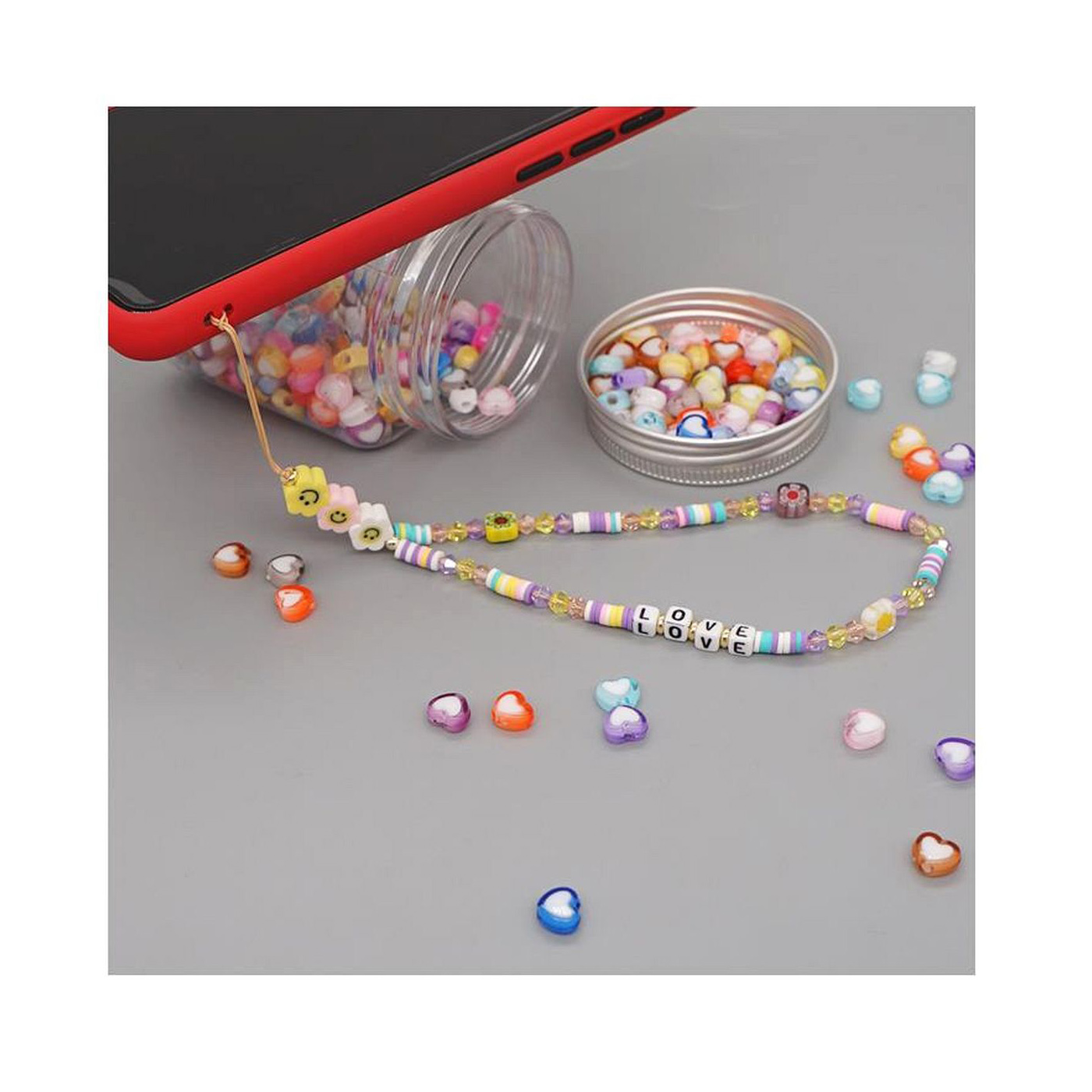• As shown is a high-fashion mobile phone string with multi colors clay materials.