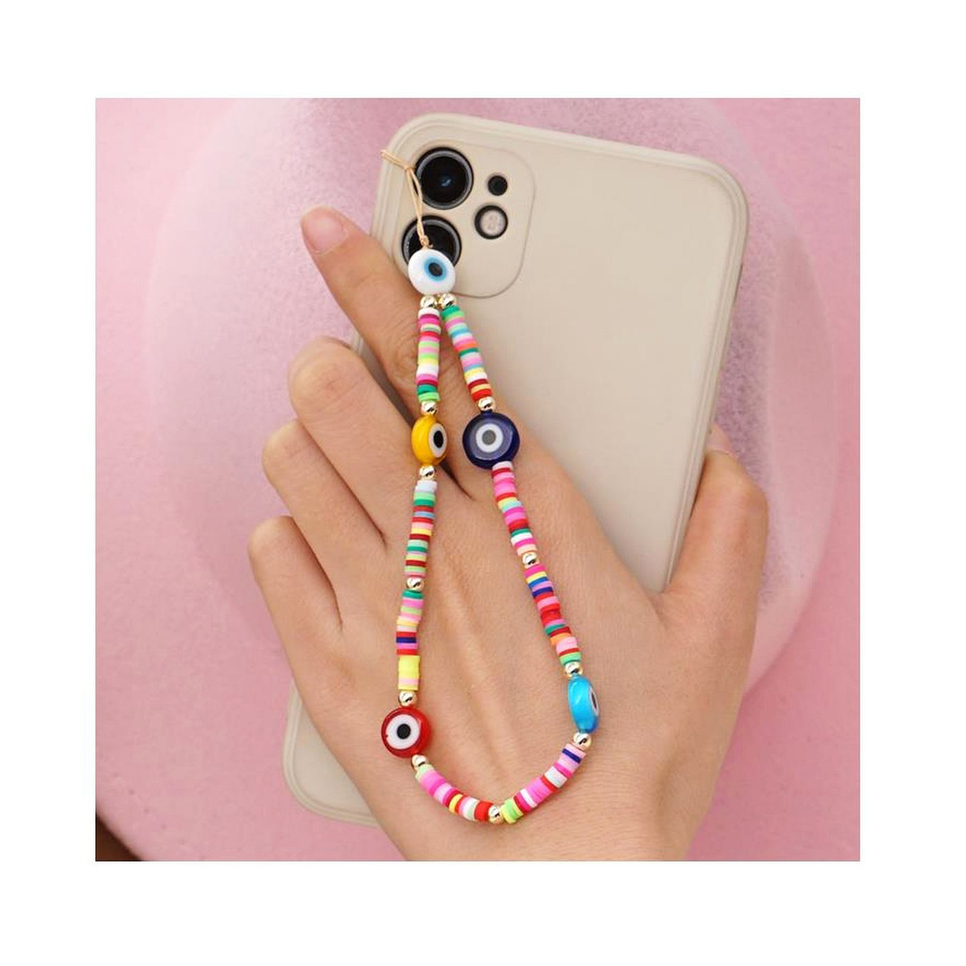 • As shown is a high-fashion mobile phone string with multi colors clay materials.