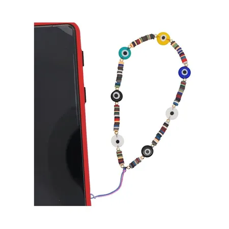 As shown is a high-fashion mobile phone string with multi colors clay materials.