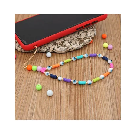 As shown is a high-fashion mobile phone string with multi colors plastic materials.