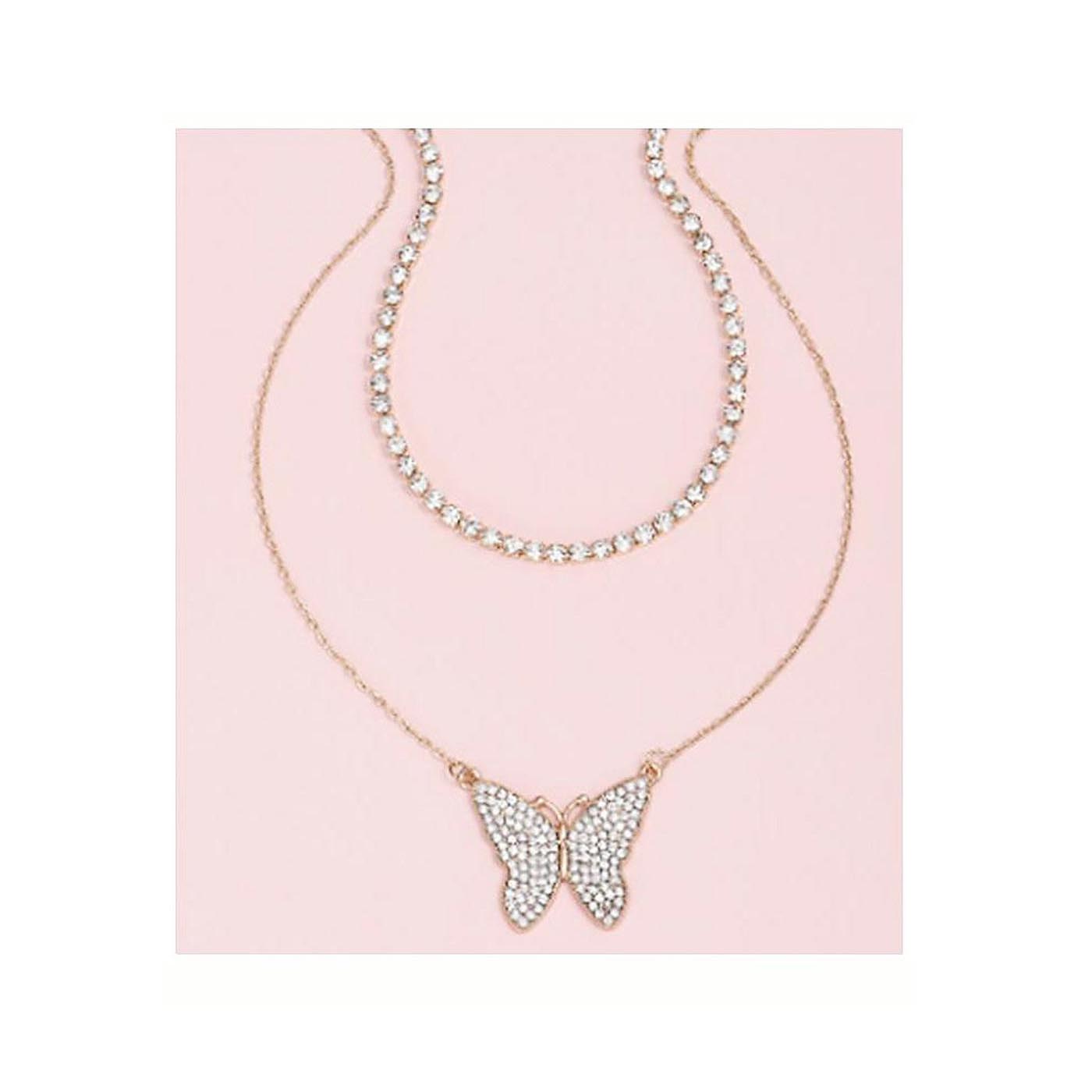 Fashion Multi Strand Butterfly Pendant Crystals Chain Necklace