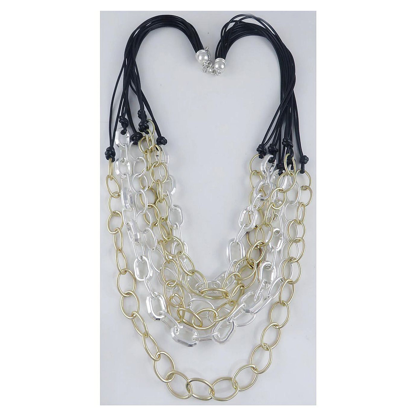 • As shown is a high-fashion multi strand materials chains with wax rope necklace.