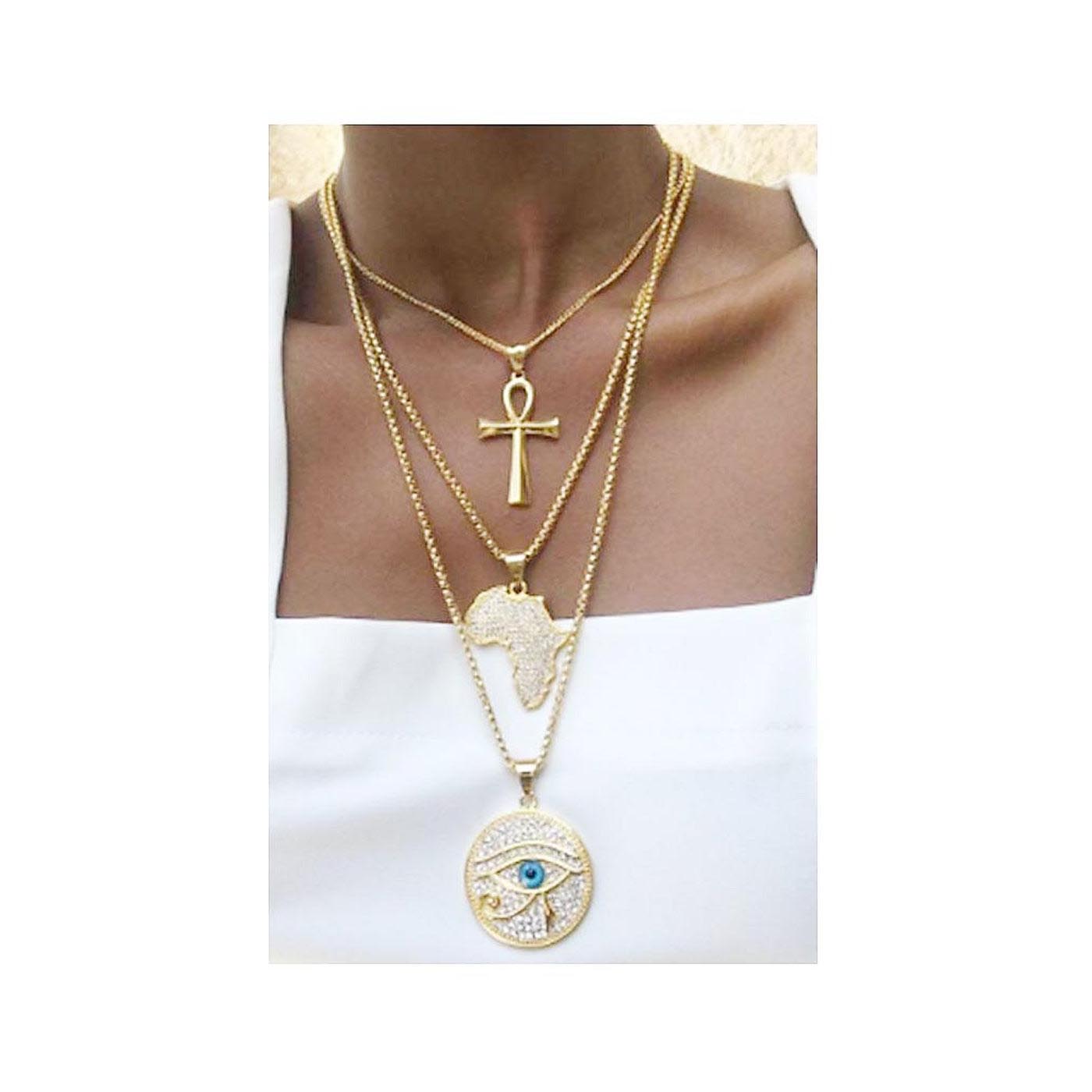 Fashion Multi Strand Golden Plated Crystals Pendant Necklace