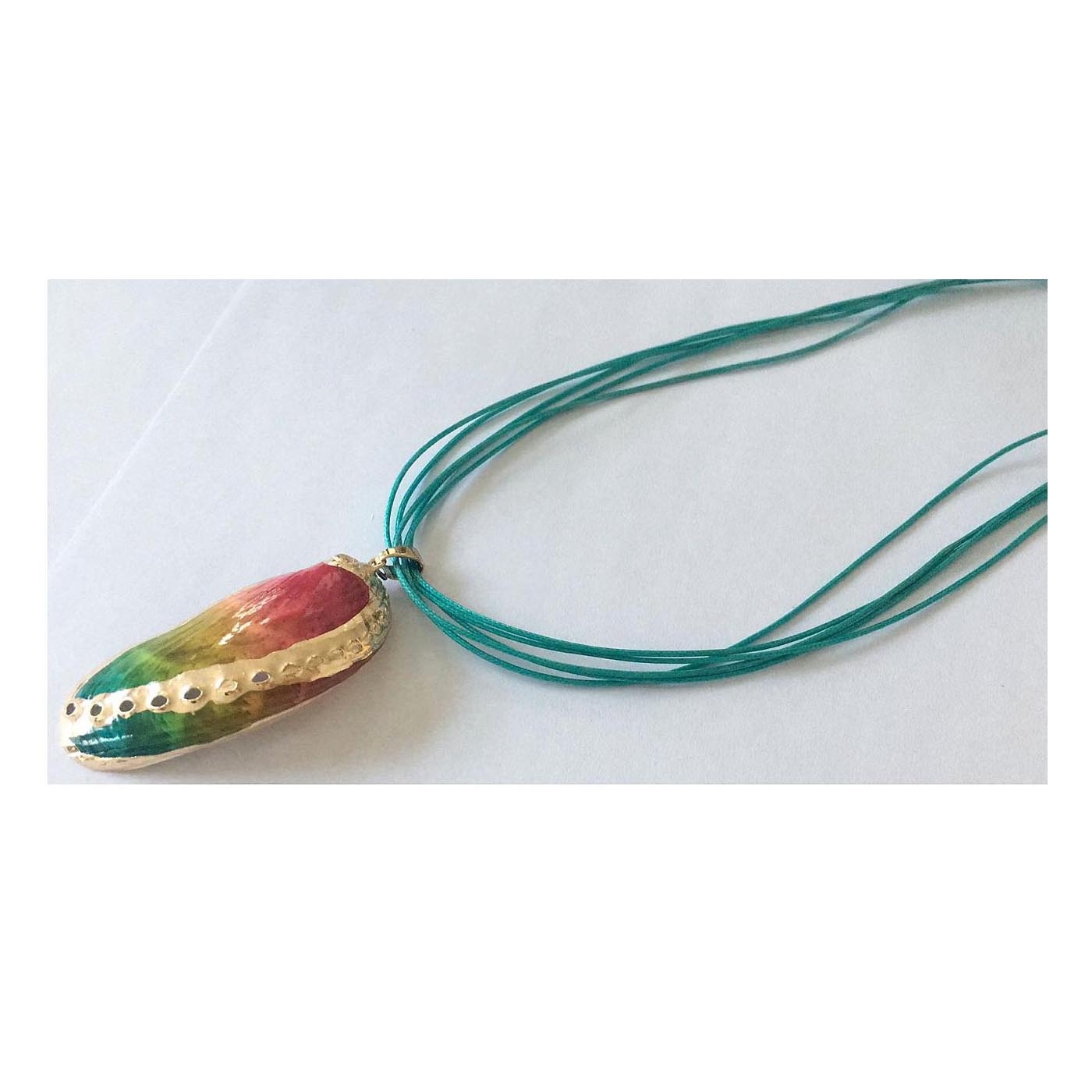 • As shown is an elegant trendy shell styles necklace with multiple strands each highlighted by metallic accessories.
