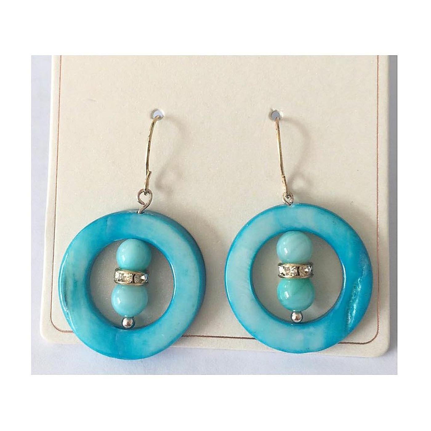 • As shown is a high-fashion natural circle shell with crystals charm drop earring.