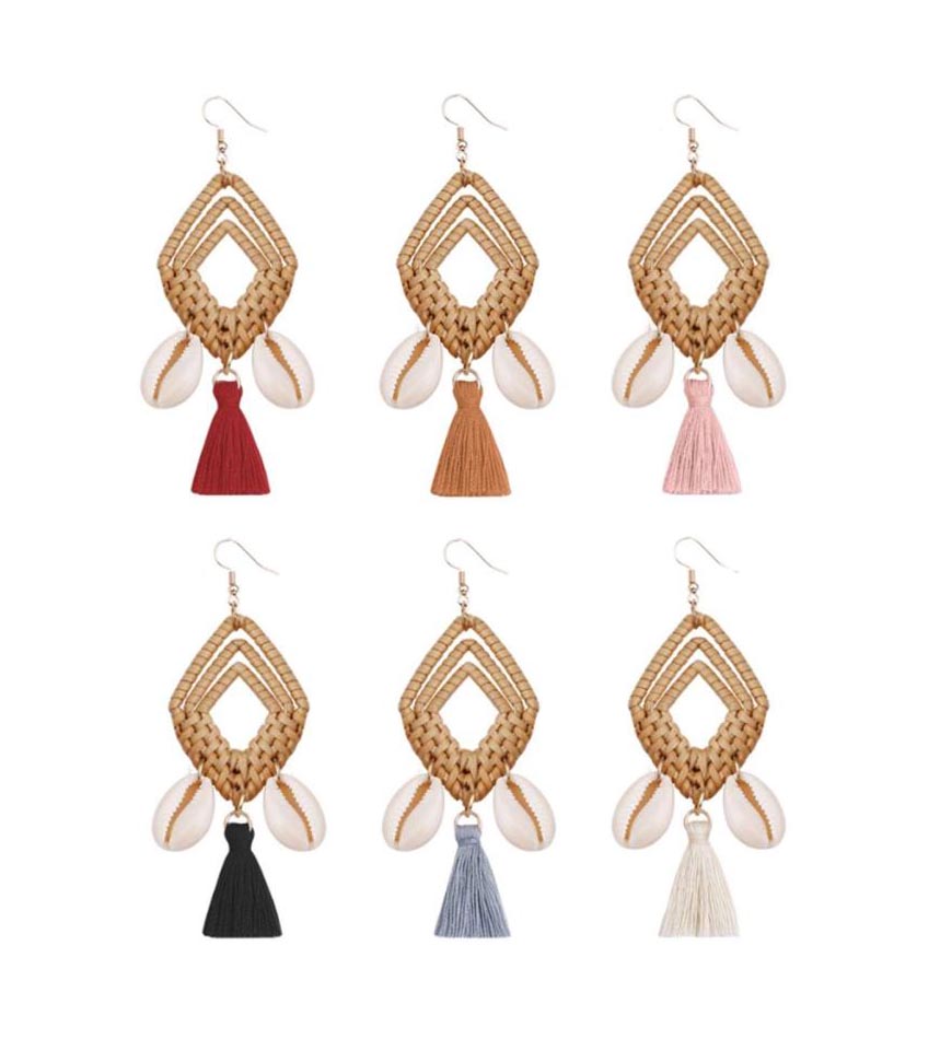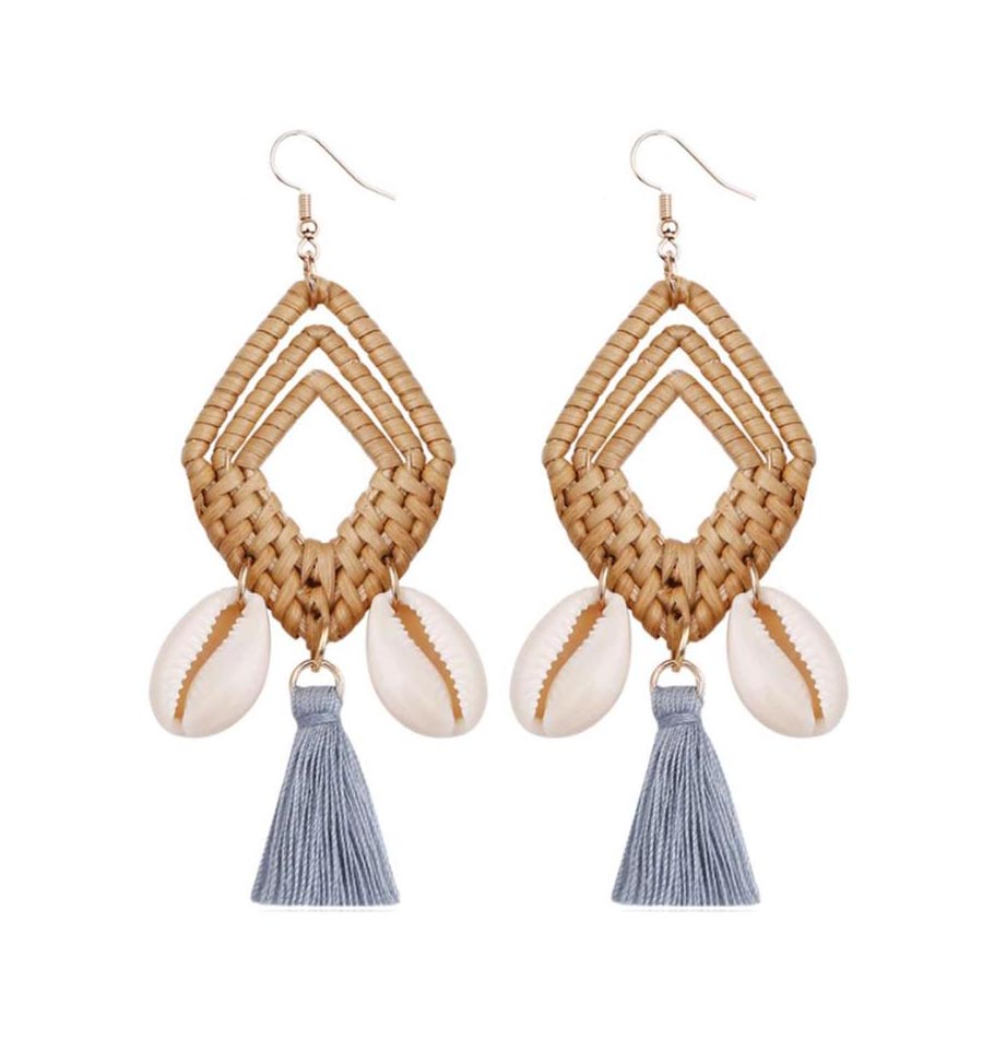 • As shown is a high-fashion golden plated shell charm drop earring.