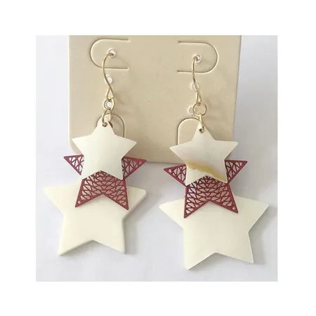 • This is a pair of high fashion statement earring with drops made in a variety of materials including shell, stainless steel and metal alloy.