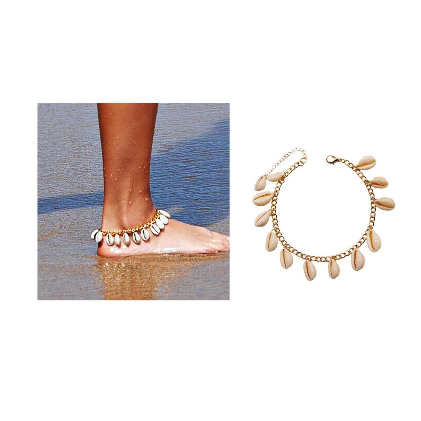 • As shown is a high-fashion natural shell with golden plated charm anklet.