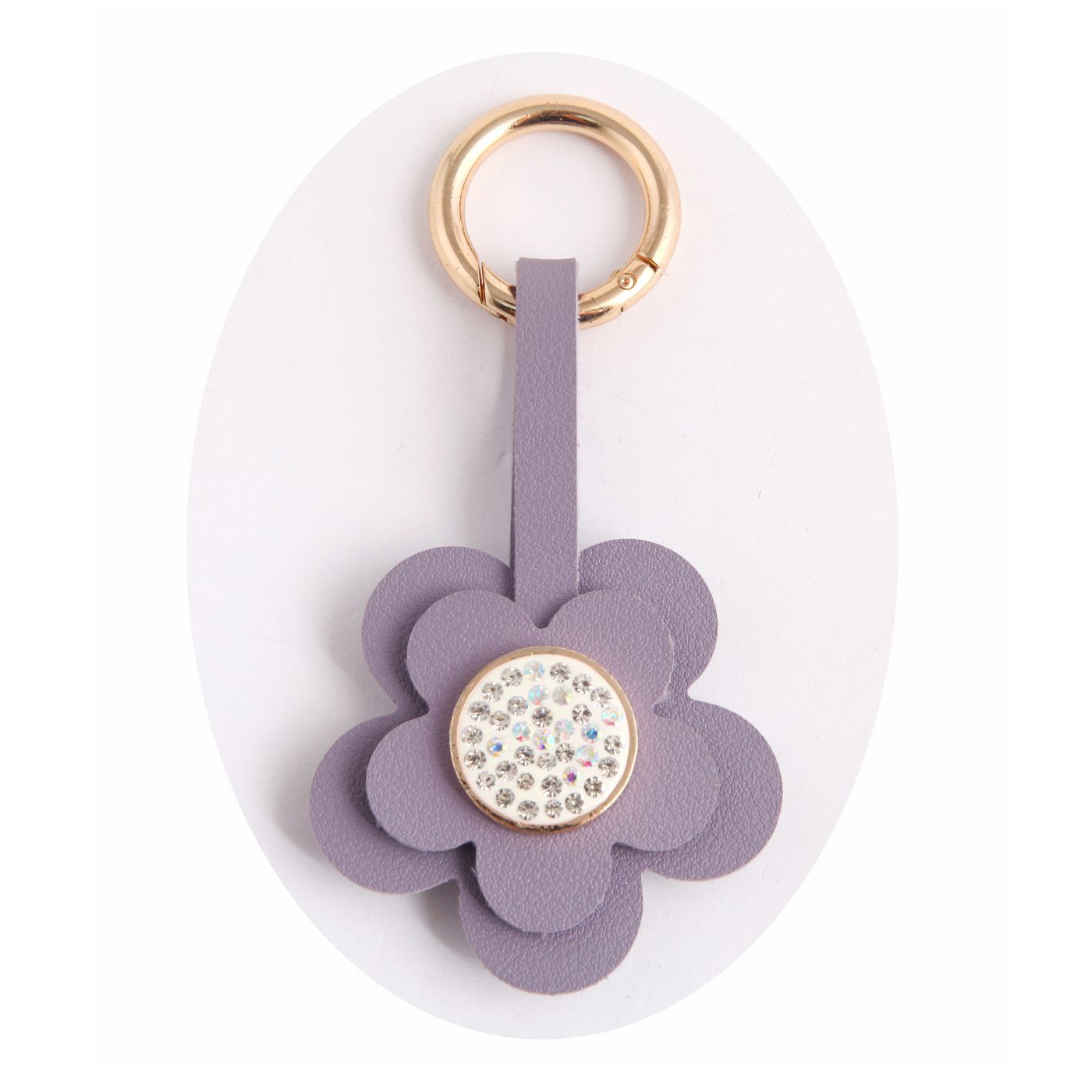 • As shown is a high-fashion golden plated PU leather flower styles charm key chain.