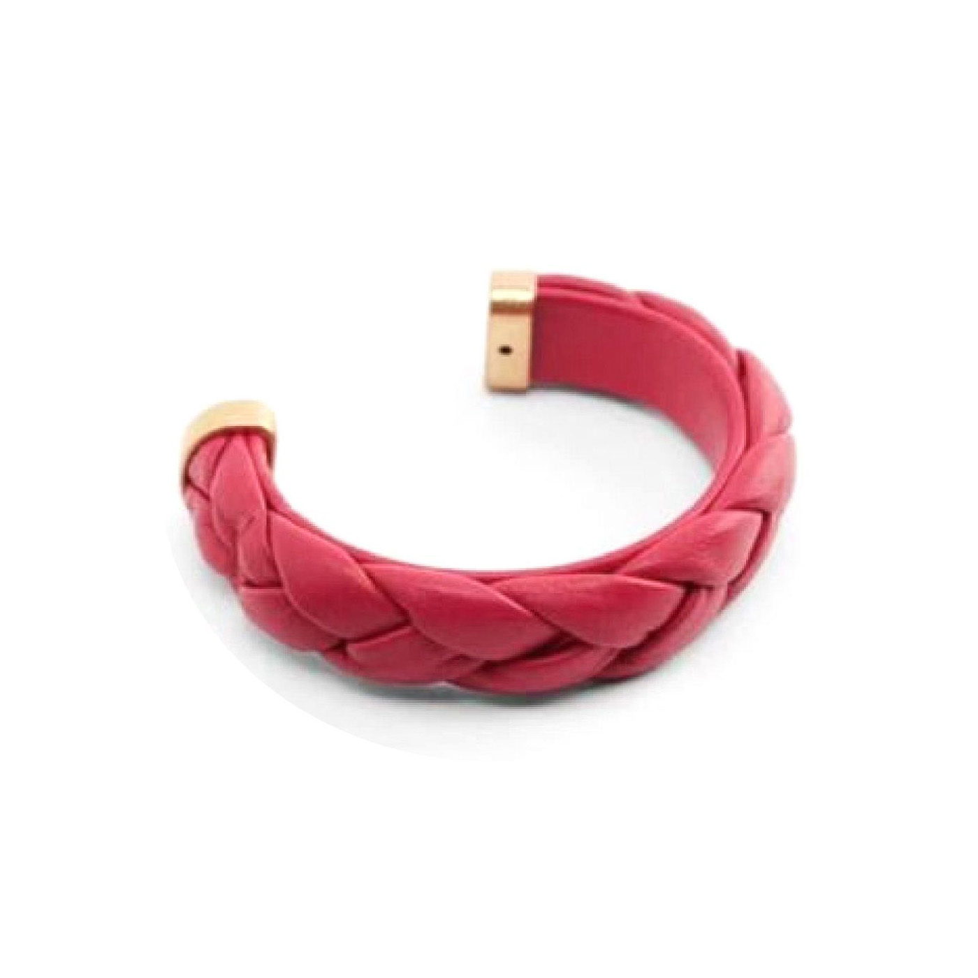As shown is a high-fashion PU leather golden plated bangle with alloy materials.