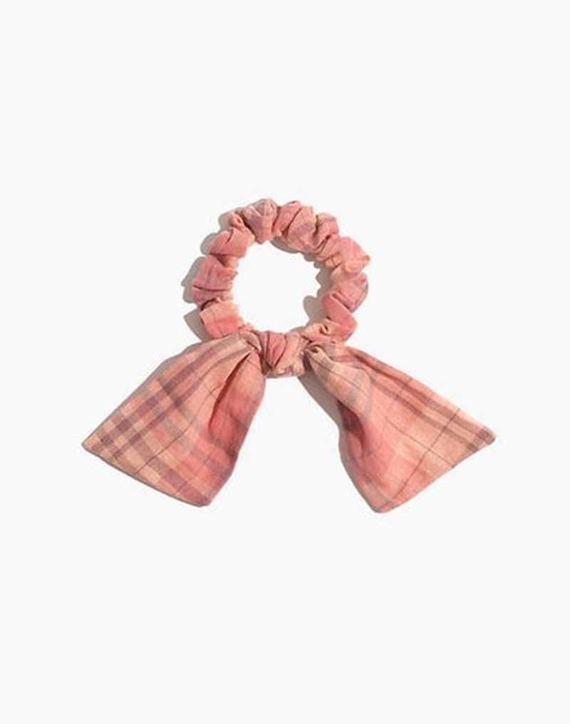 Fashion Pink Check Rabbit Hair Tie, Made in Cambodia or China