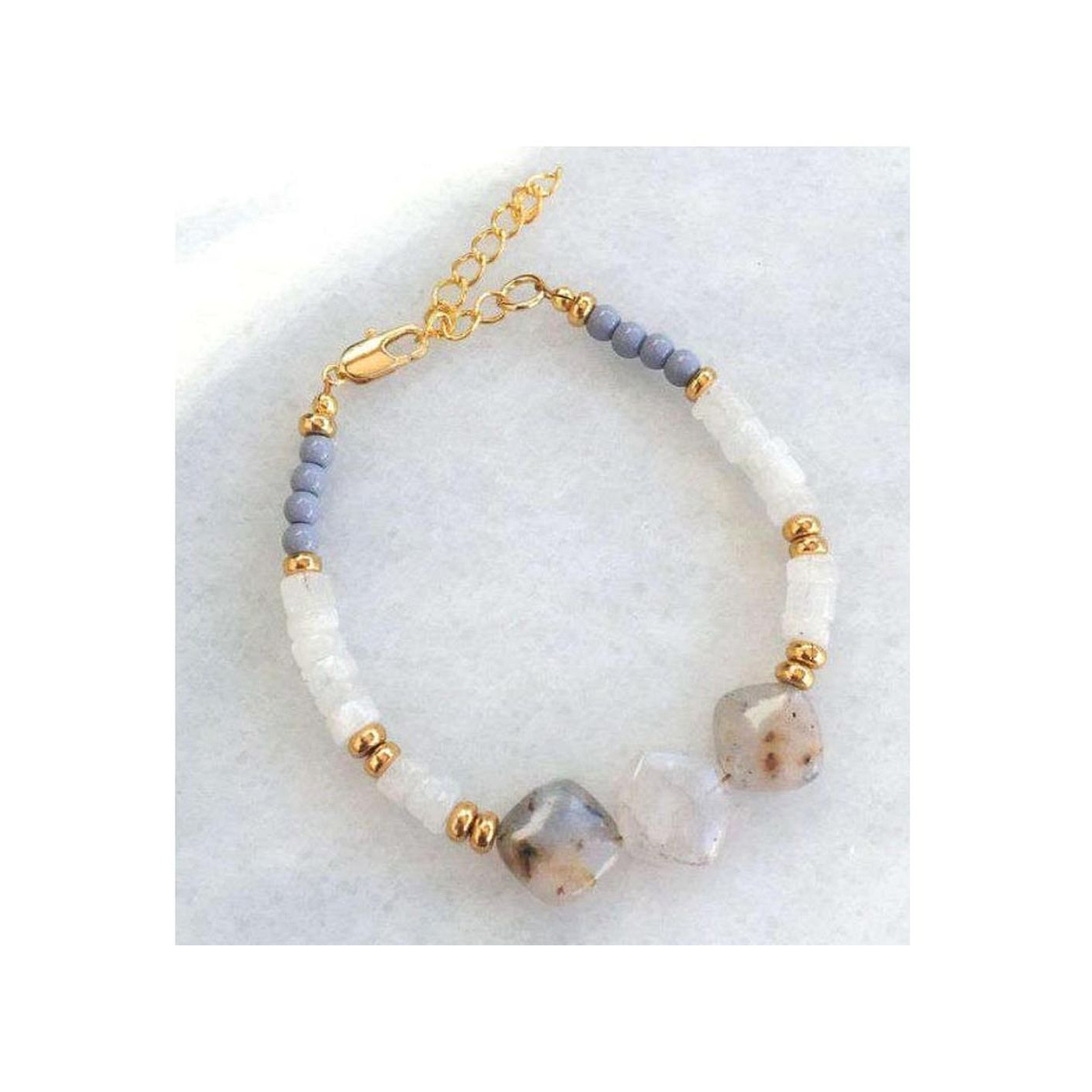 As shown is an elegant trendy plastic beads gold plated chain bracelet.