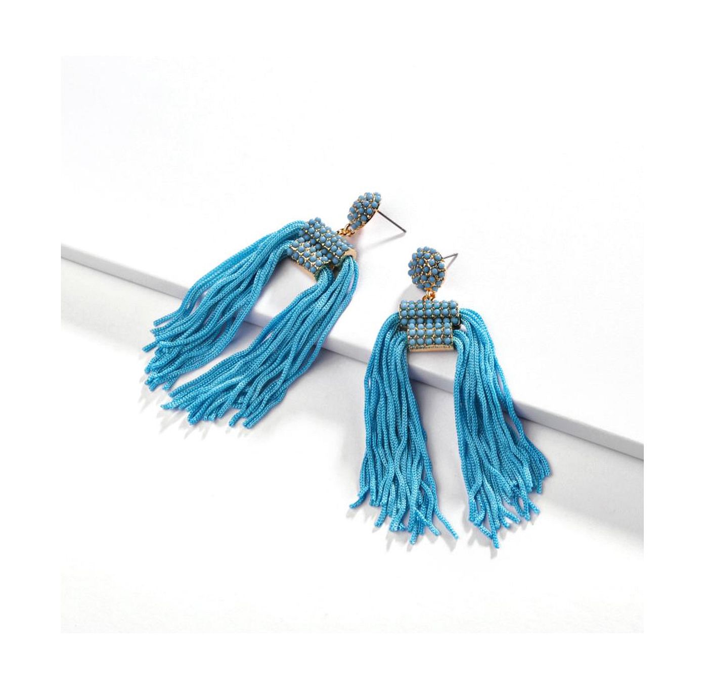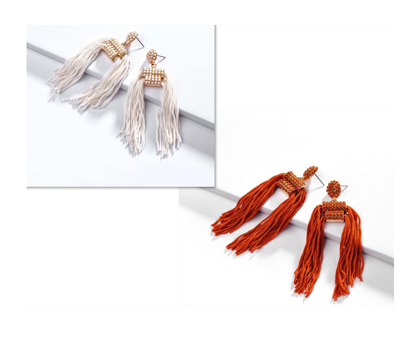As shown is a high-fashion plastic beads tassel style golden plated alloy parts drop earring.