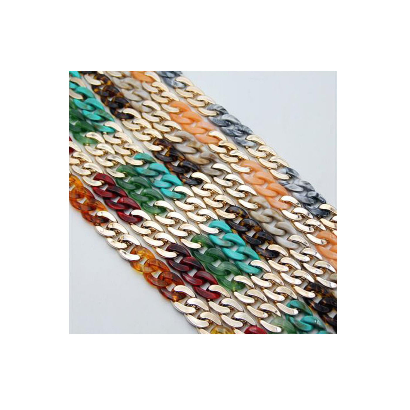 • As shown is a high-fashion alloy materials and plastic parts with golden plated chain.