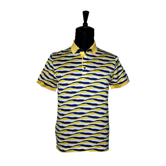 This polo T-shirt is made of soft, breathable material for optimal wearing comfort. The polo T-shirt is printed with a wavy pattern in a yellow and blue color. Pair this polo T-shirt with a pair of linen shorts and a pair of flip-flops for a trendy, smart casual look.