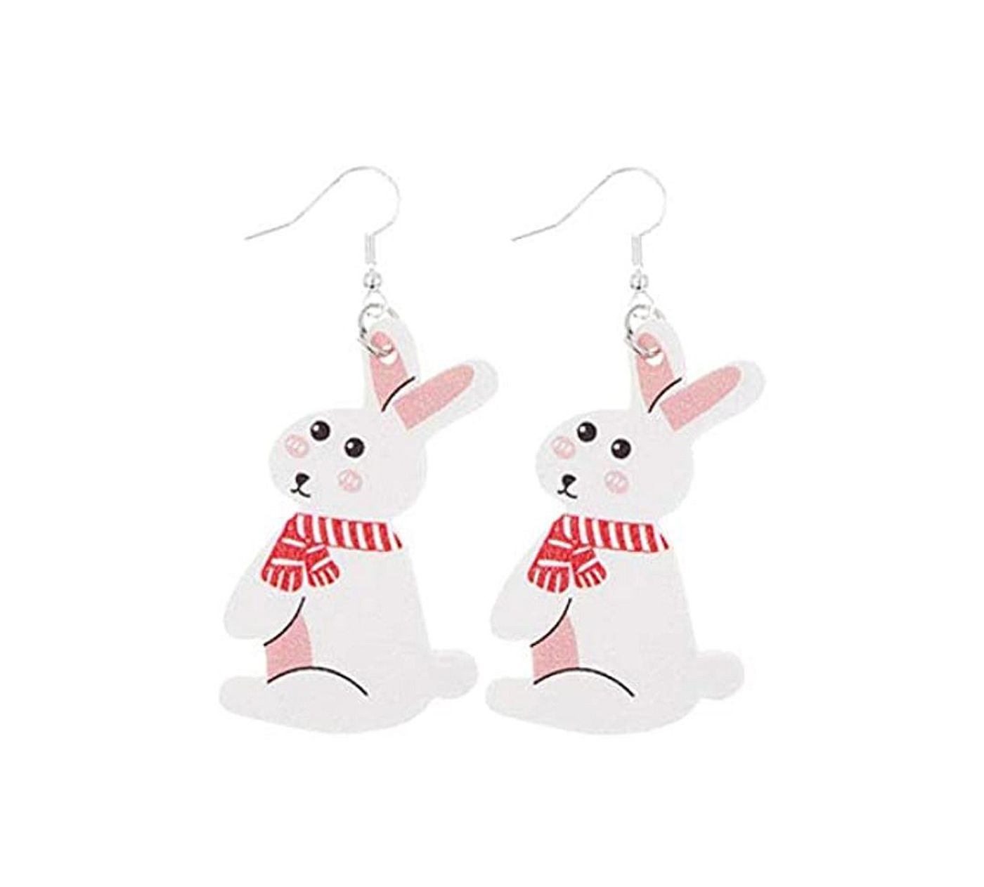 As shown is a high-fashion rabbit style acrylic parts drop earring.
