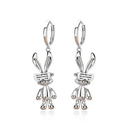 As shown is a high-fashion silver plated rabbit style alloy parts and charm drop earring.