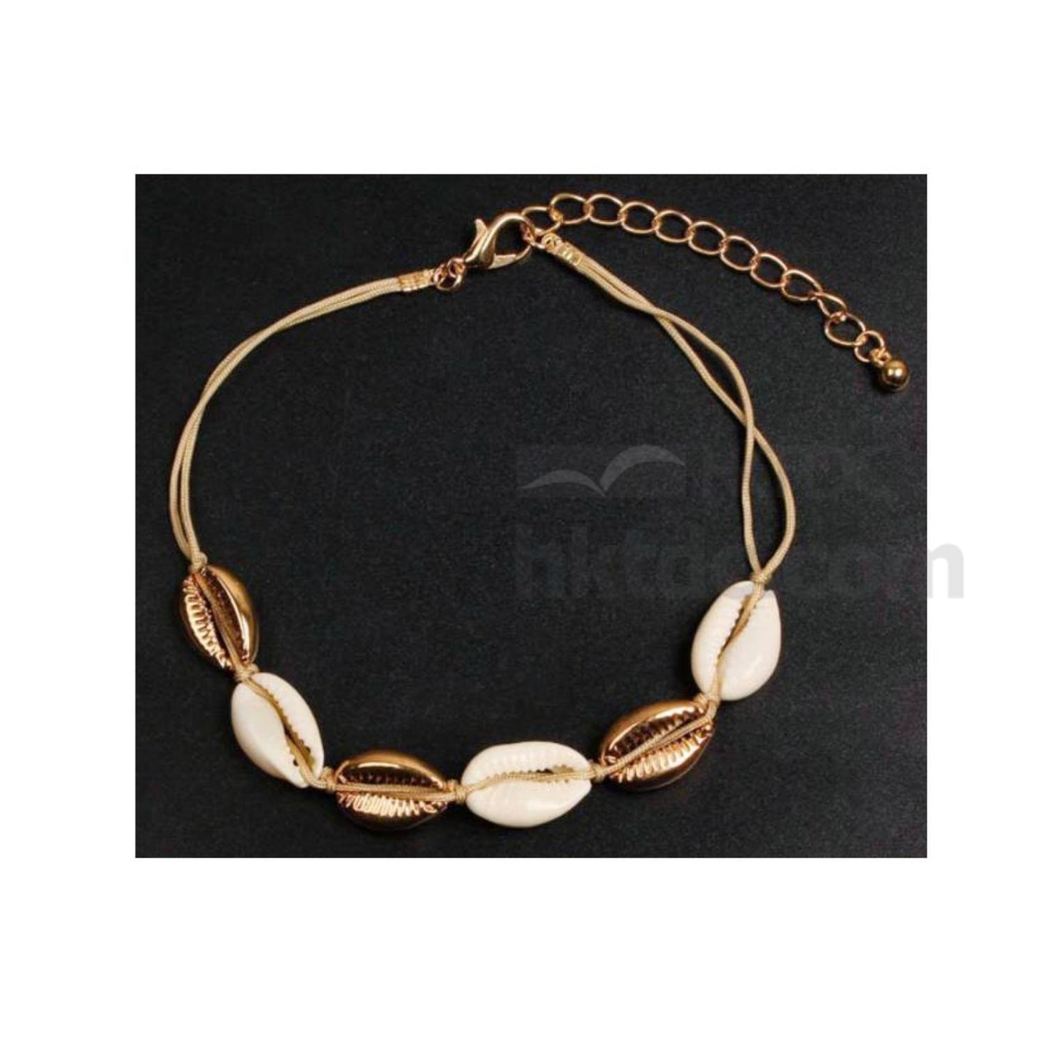 As shown is a high-fashion golden beads and shell charm bracelet.
