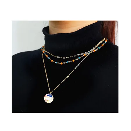 • As shown is a high-fashion shell parts golden plated alloy parts multi strand chains necklace.