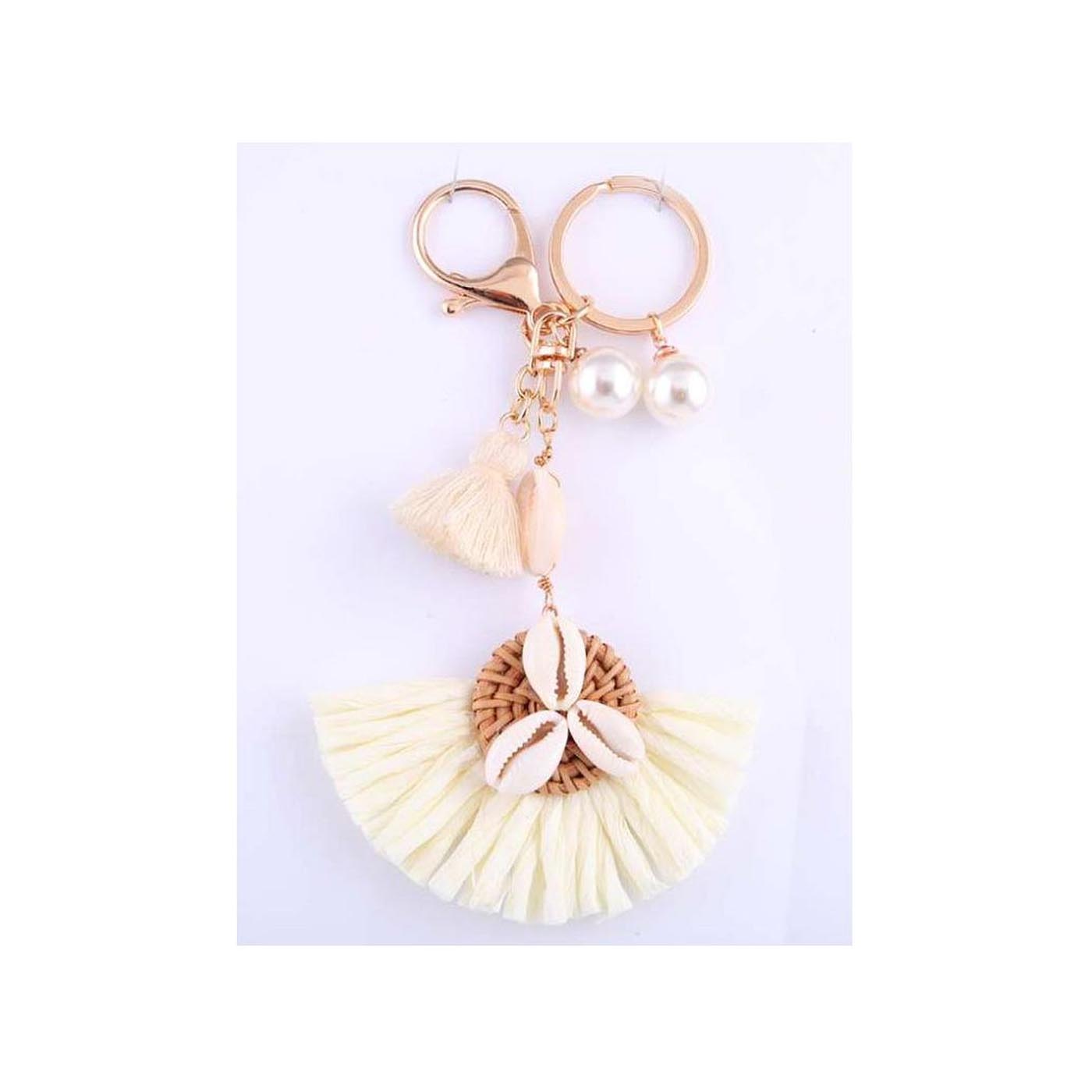 • As shown is a high-fashion shell styles and pearl beads charm golden plated key chain.