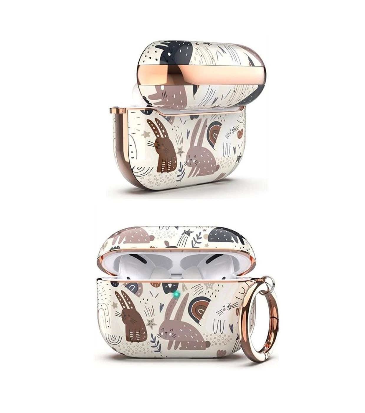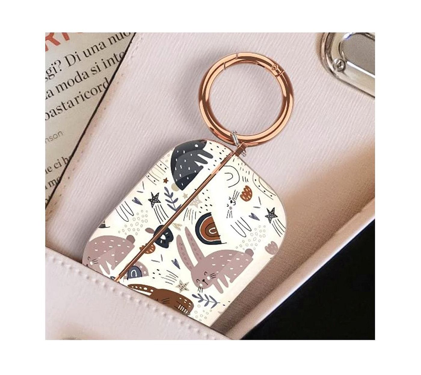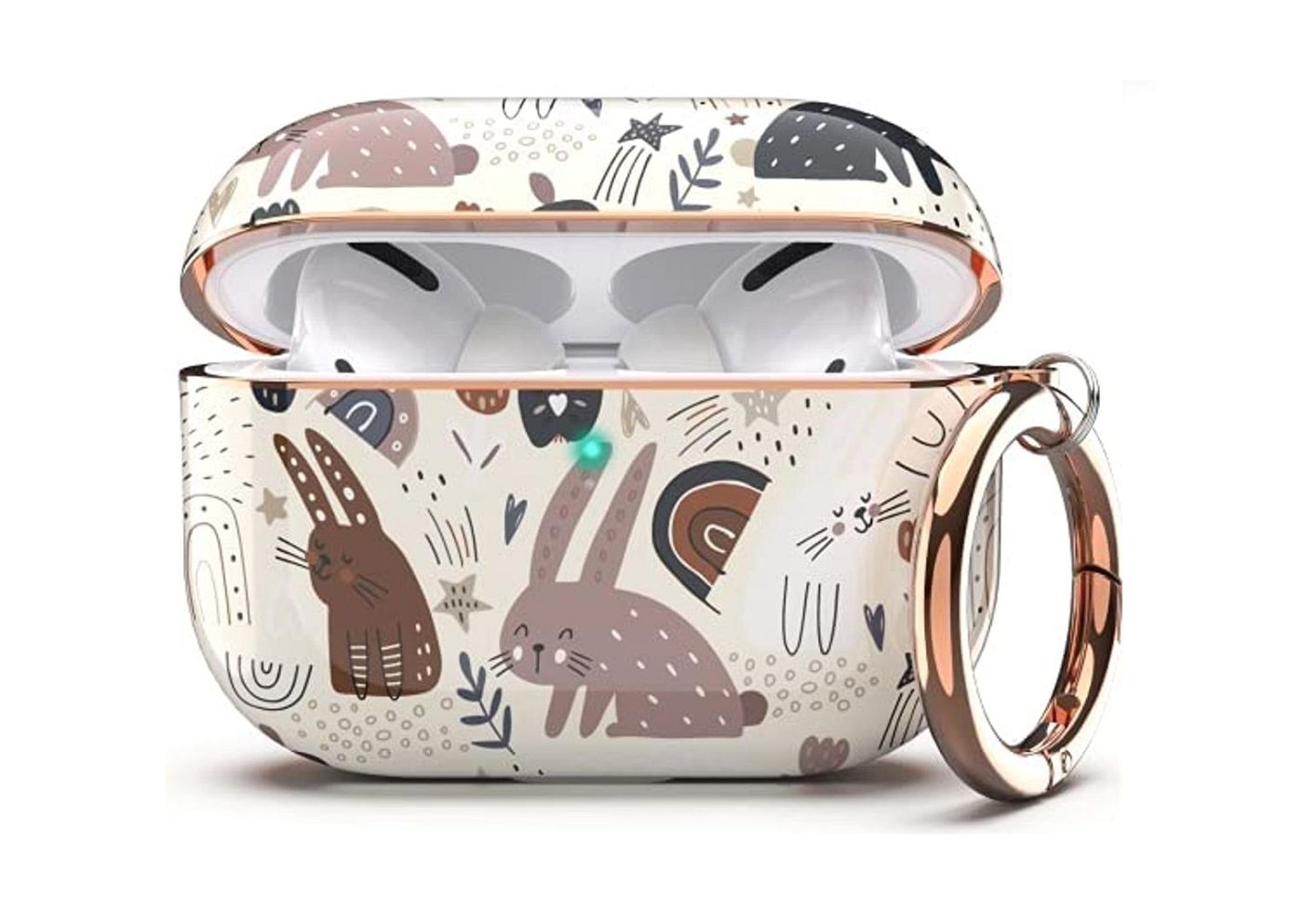As shown is a high-fashion earbuds box wireless bluetooth headset soft silicone case dust-proof cover golden plated key chain.