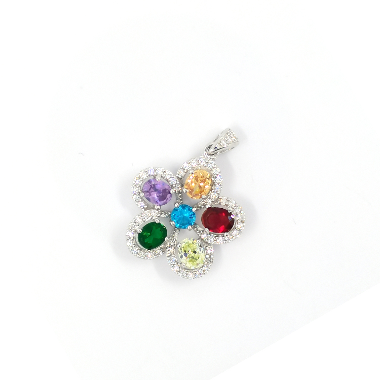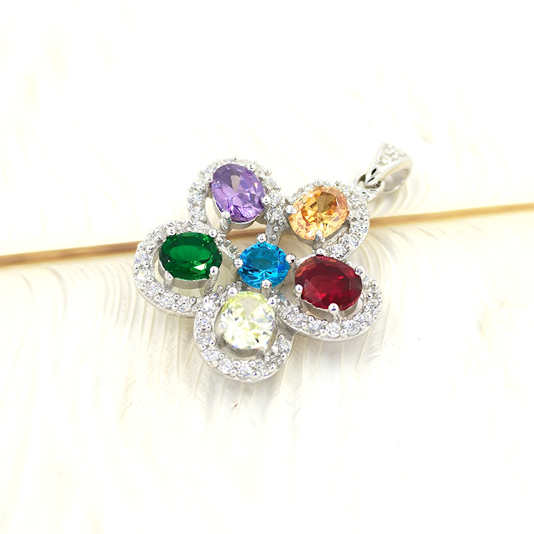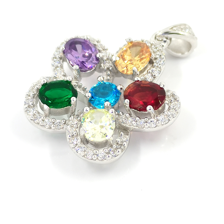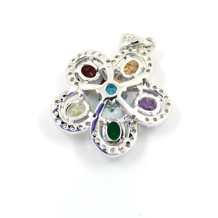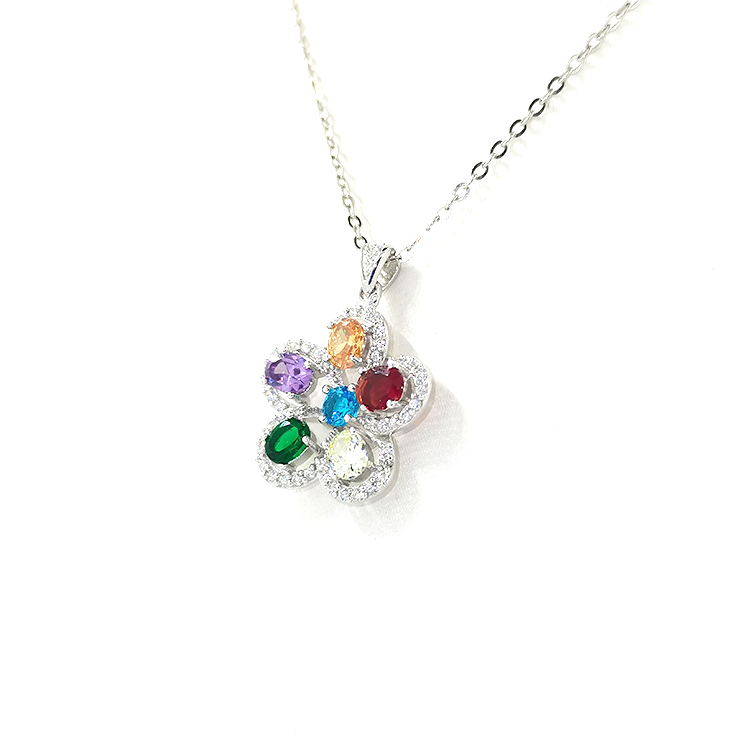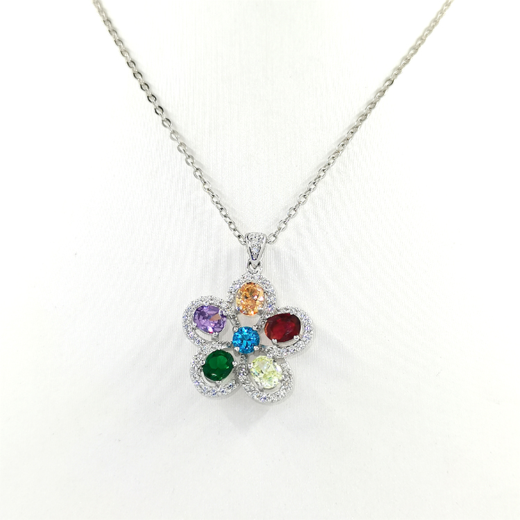 Fashion Style Women Necklace Custom Jewelry Vintage Oval Cut Gemstone Flower Design Crystal Pendant